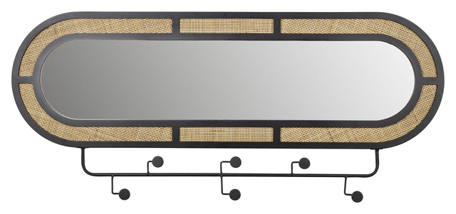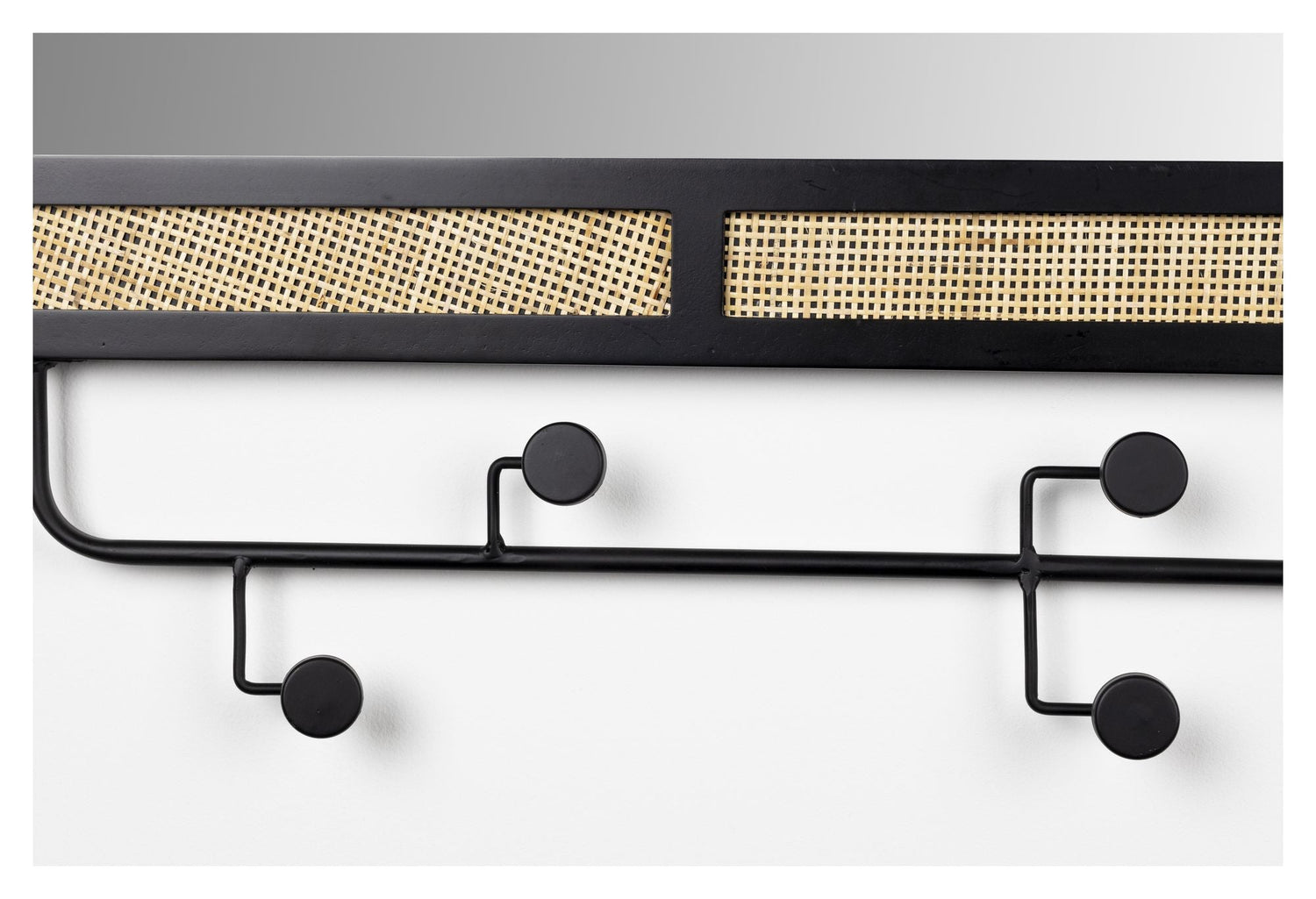 - Materiale: Glas (glas mirror with rattan decoration. Black powder coated iron frame with 6 hooks.)
