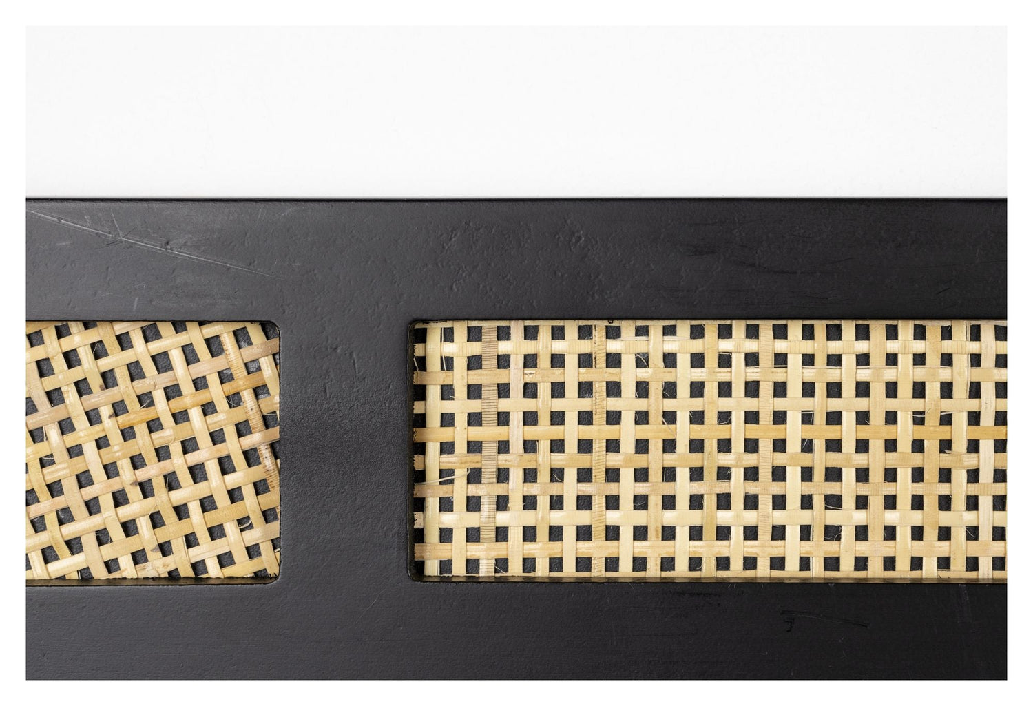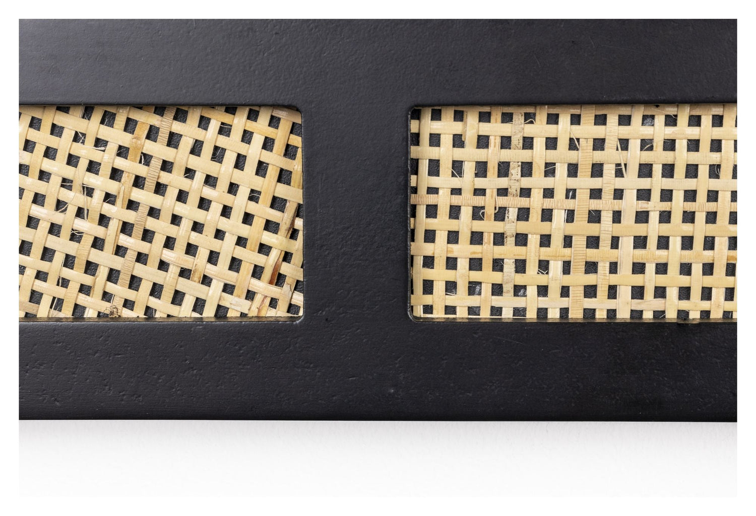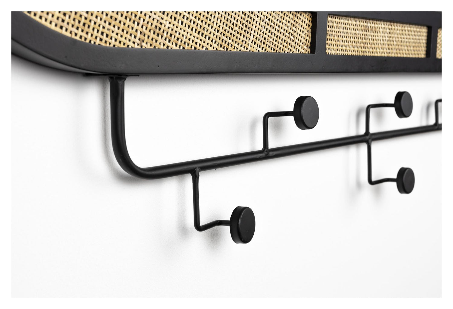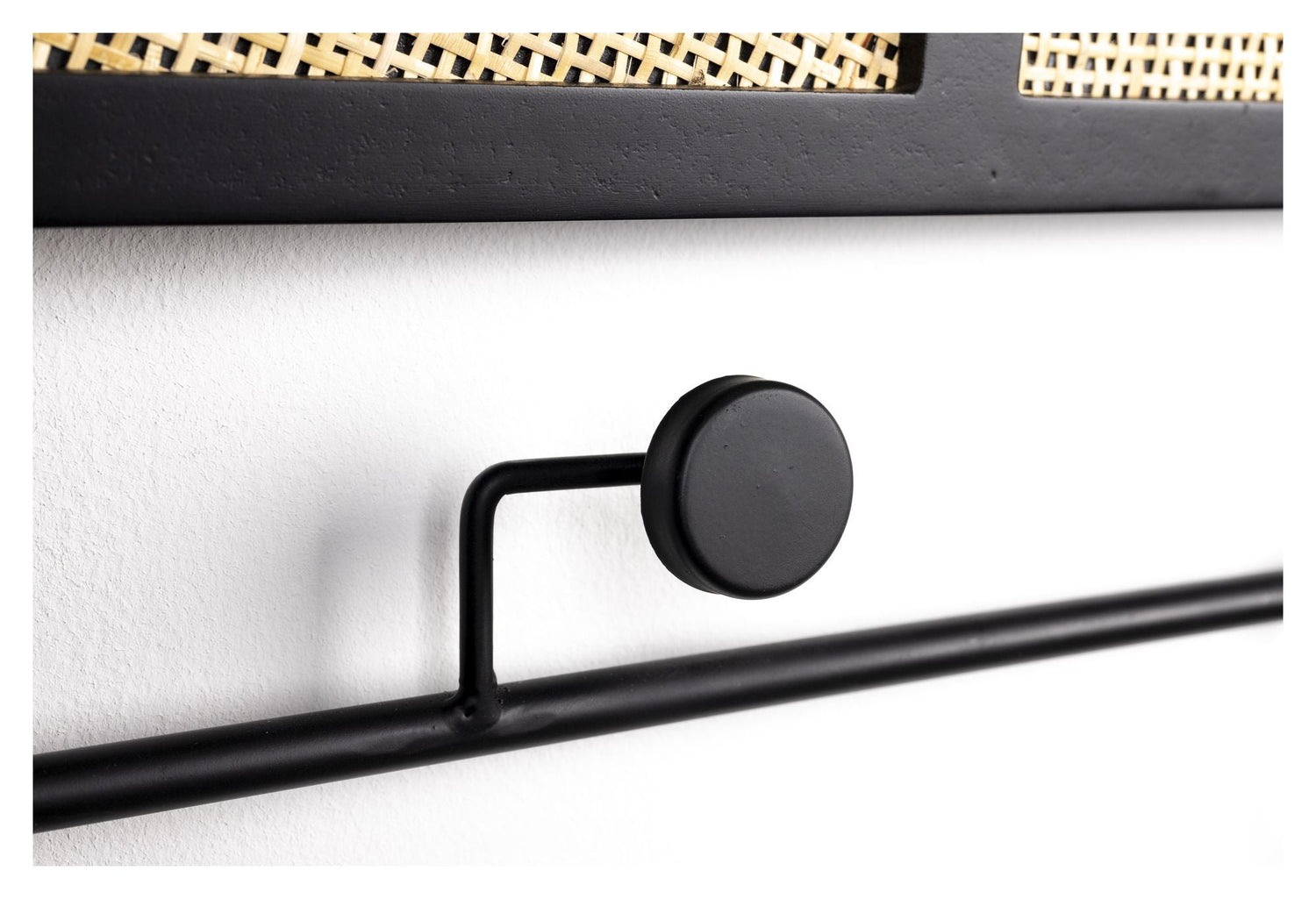 "Få et stilfuldt og praktisk spejl med knager til dit hjem. Den sorte ramme og rattan dekoration giver et moderne look, mens de seks knager giver dig mulighed for at organisere dine ting. Et must-have til enhver indgang."