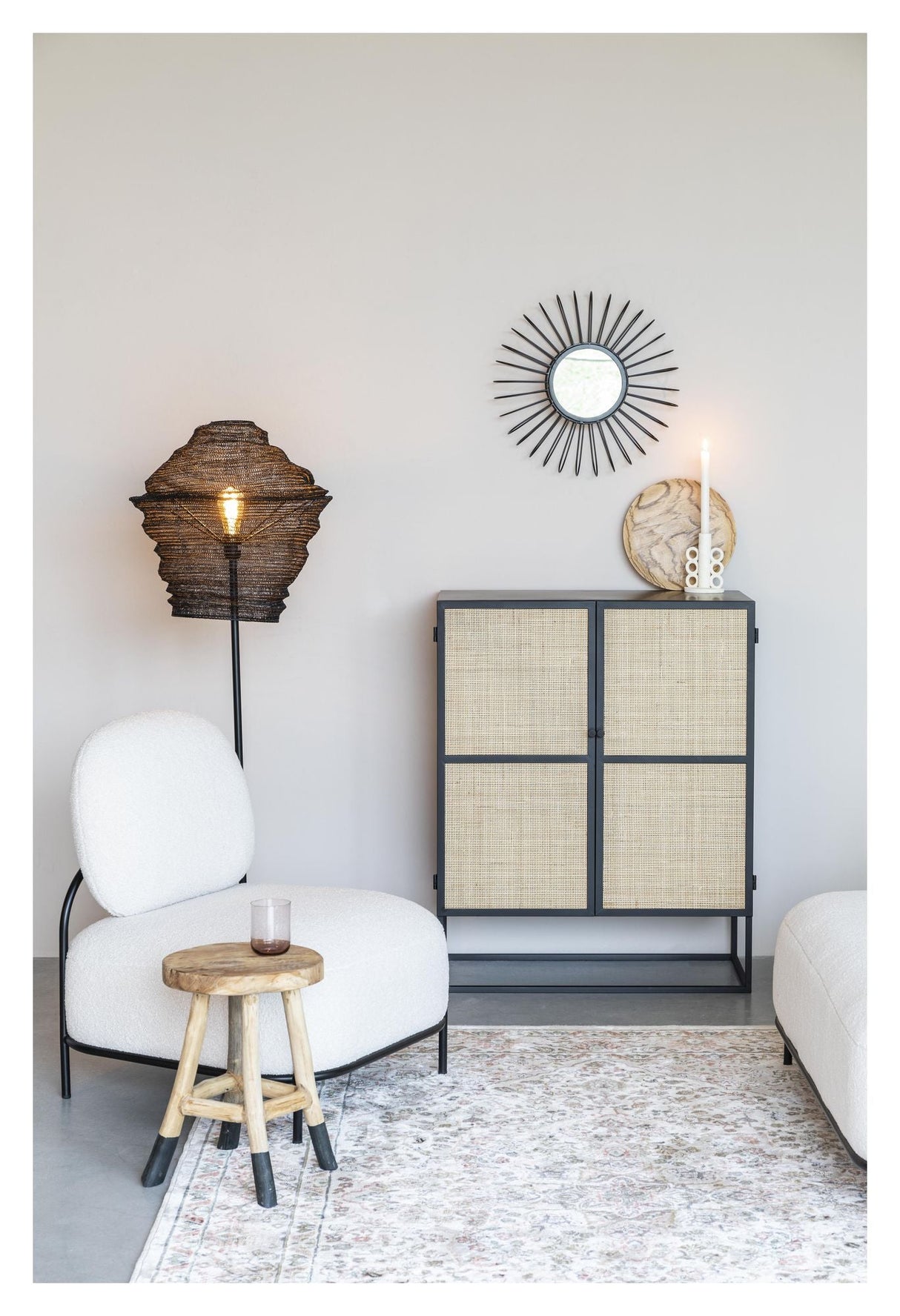 Få en elegant og organiseret indretning med homii Guuji Højskænk. Den kombinerer naturligt rattanflet med sort metal og tilføjer et sofistikeret touch til ethvert rum.