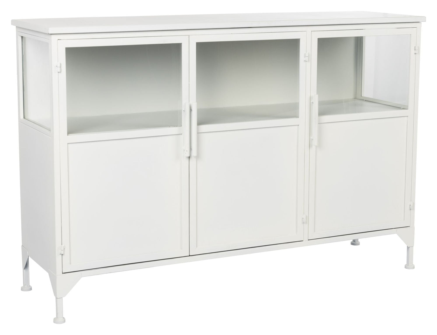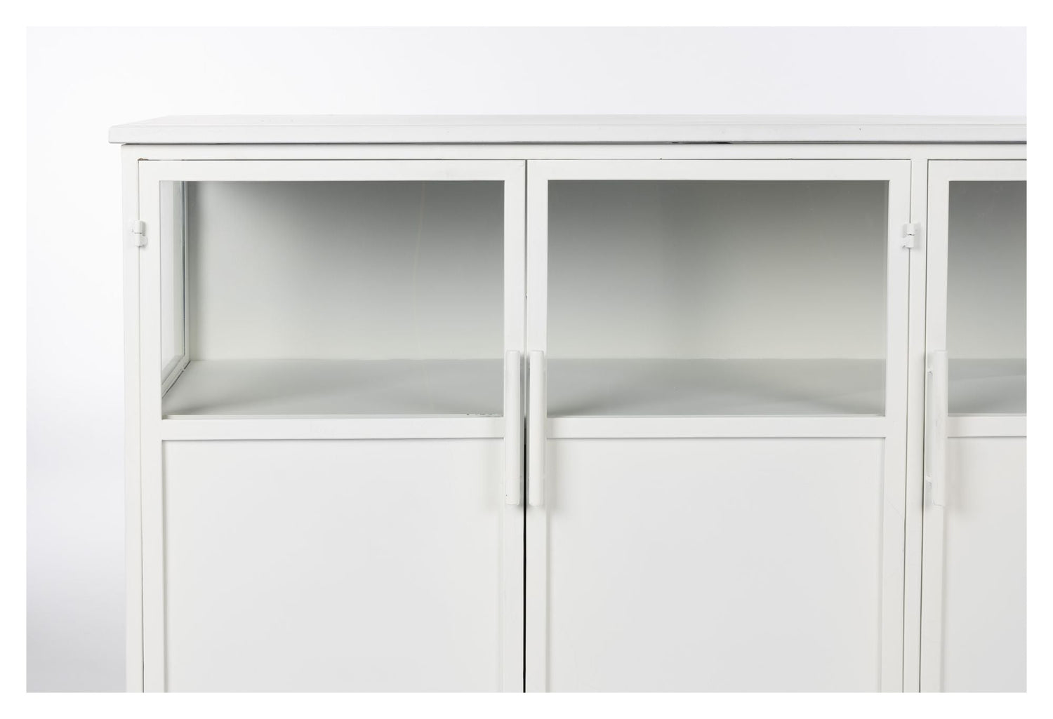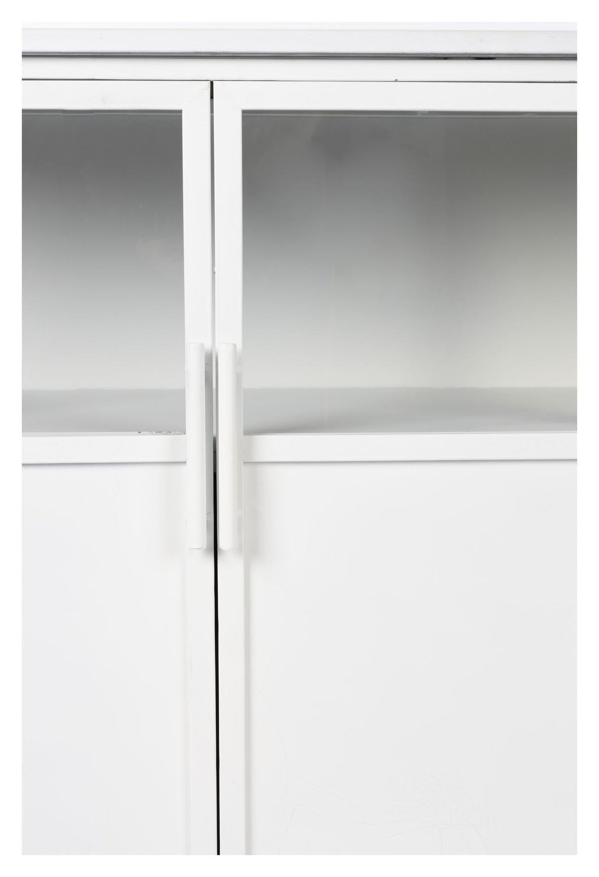 - Materiale: Jern (White powder coated iron cabinet with clear tempered glass windows.)