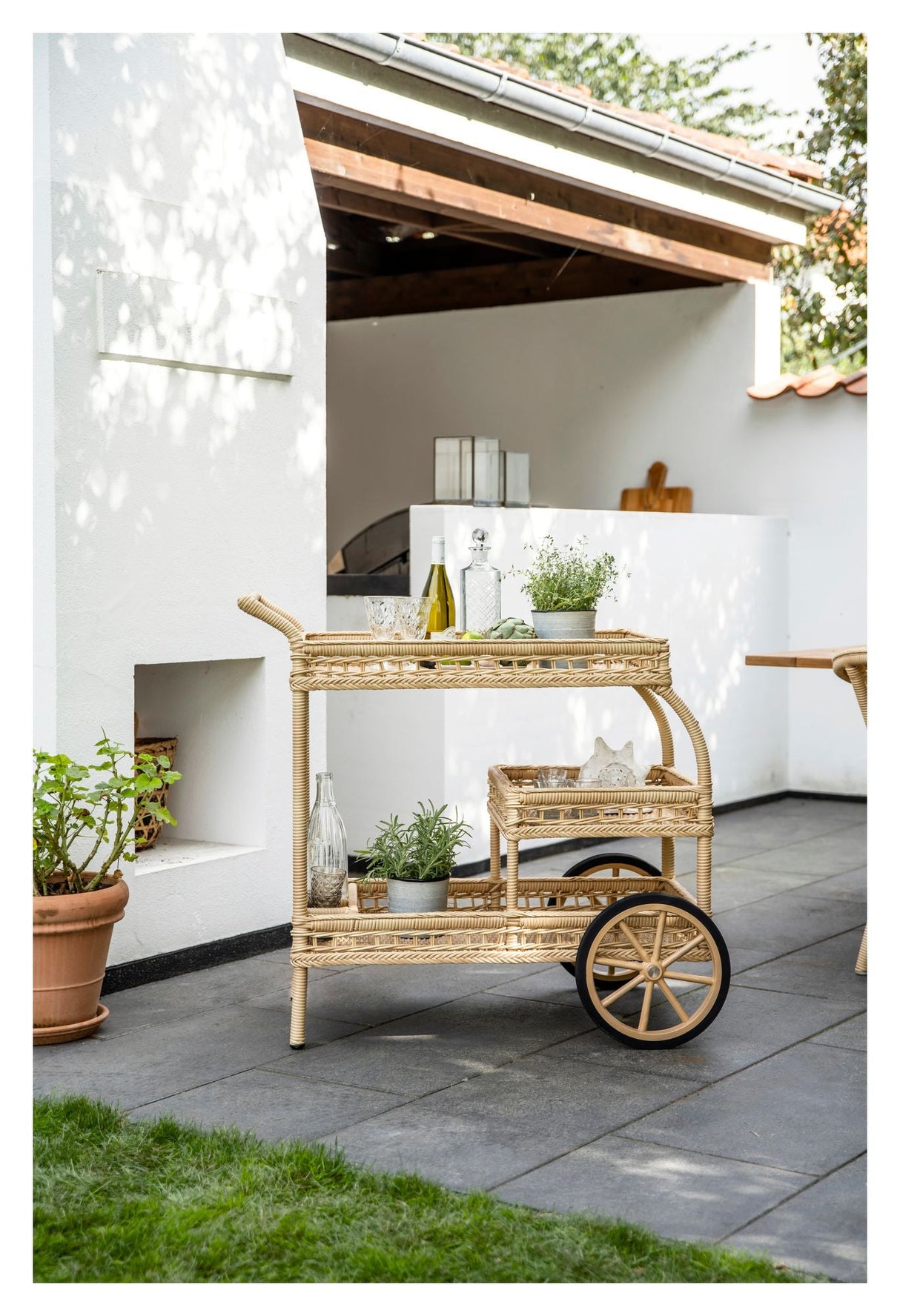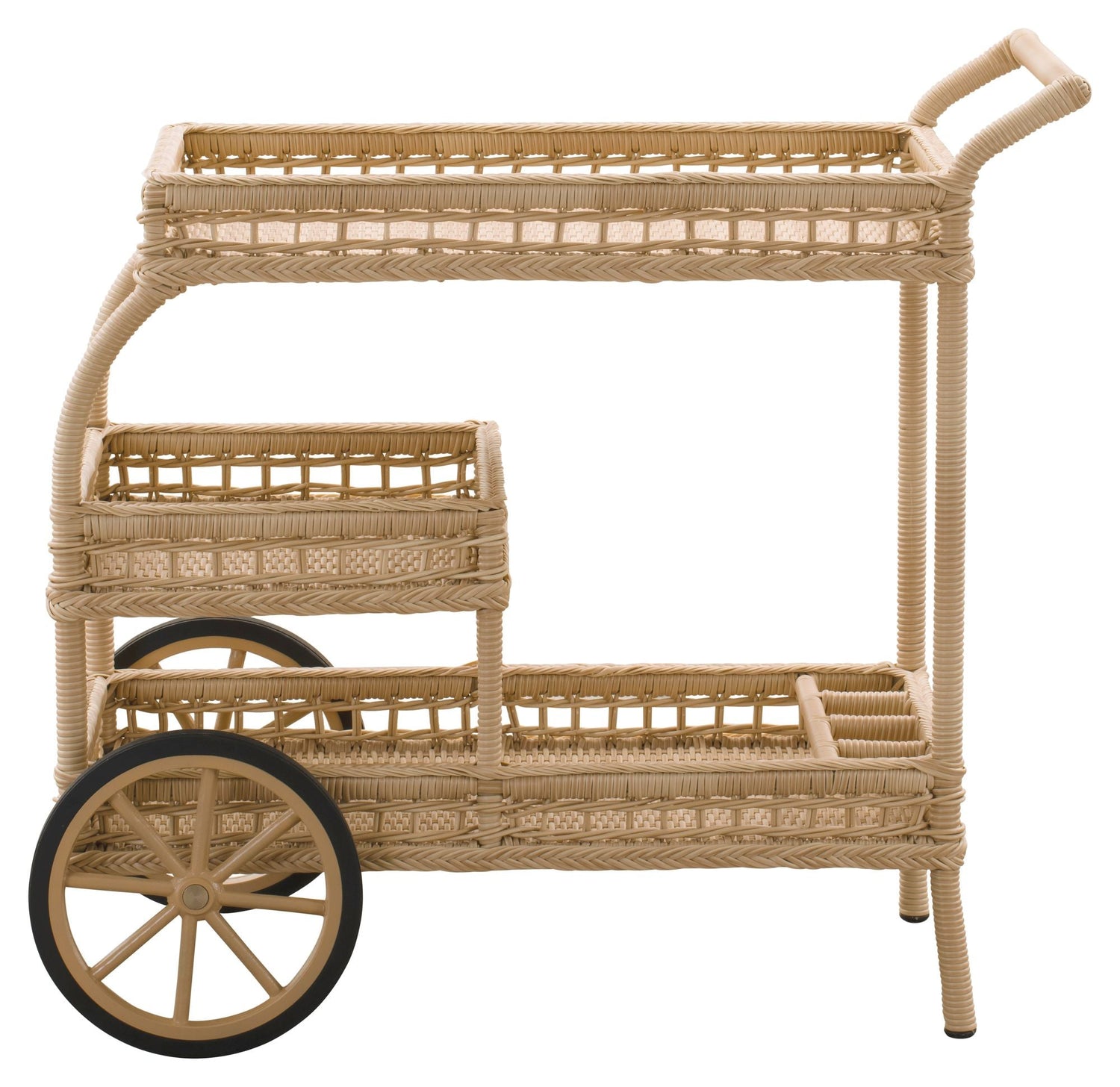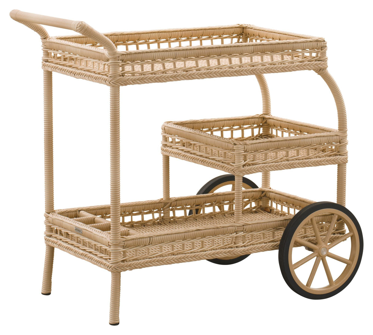 Dette James Exterior Barbord i naturfarve er perfekt til både indendørs og udendørs brug. Lavet af håndlavet ArtFibre, en kunstig fiber lavet af polyethylen, er dette bord vejrbestandigt og vedligeholdelsesfrit. Med sit elegante design og holdbare materialer er det ideelt til servering og opbevaring af dine favoritting.