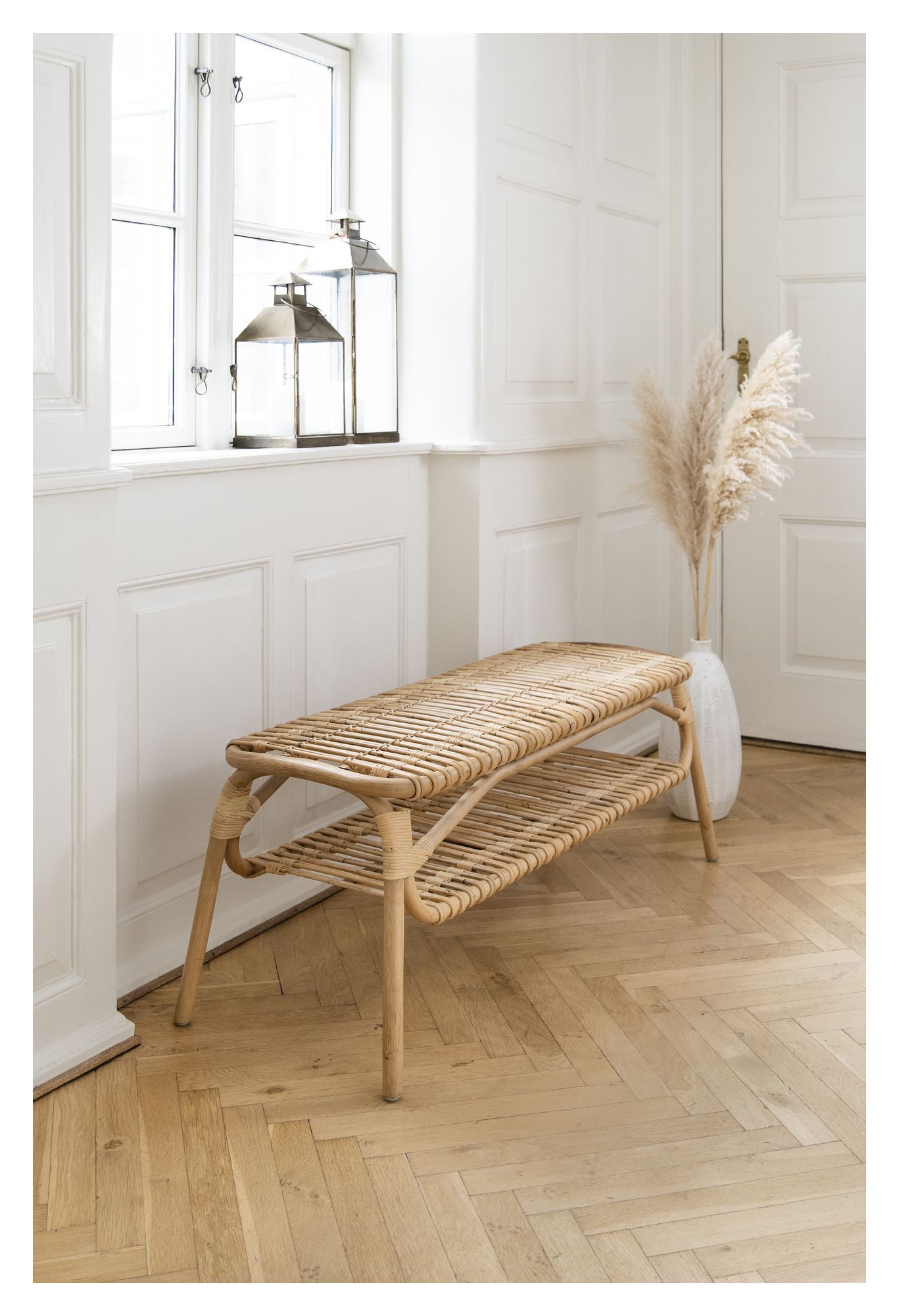 "Få et stykke bæredygtig luksus med Machiya Bænk, Natur. Den håndlavede rattanbænk tilføjer en organisk og elegant atmosfære til dit hjem. Skab et hyggeligt hjørne, hvor du kan slappe af og nyde øjeblikket."