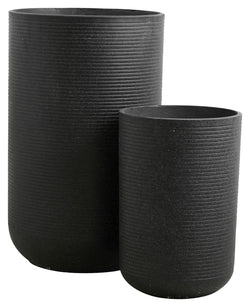 Nordal GRANITO Krukker, Sort er et sæt med to smukke krukker lavet af cement. Den lille krukke måler 27x40 cm og vejer 7,5 kg. Krukkerne er sorte og har et hul i bunden. De er velegnede som både vase og krukke, men tåler ikke frost. Med deres elegante design og holdbare materiale er disse krukker perfekte til at tilføje et stilfuldt touch til enhver indretning.