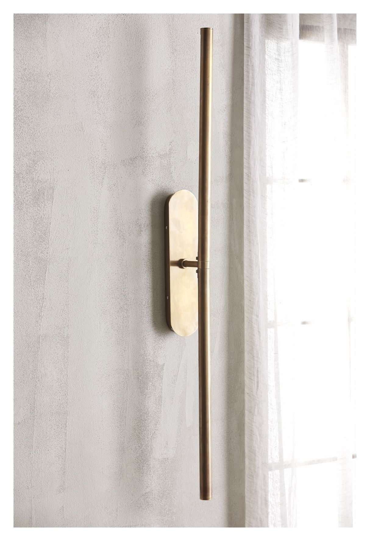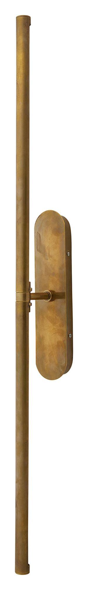 Denne smukke væglampe fra Nordal er lavet af 100% messing og vil patinere over tid, hvilket giver den et unikt og rustikt udseende. Lampen kan hænges både vandret og lodret og leveres med en 3 meter lang sort stofledning. Den kræver en fluorescerende pære, som ikke medfølger. Med sin elegante messingfinish og alsidige ophængningsmuligheder er denne væglampe perfekt til at skabe en hyggelig og stilfuld belysning i ethvert rum.