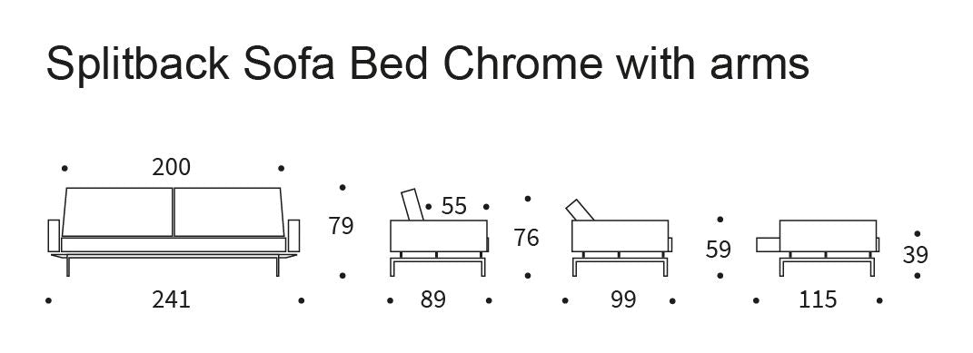 Splitback Chrome sovesofaen er designet af Per Weiss for Innovation Living. Sofaen er den perfekte kombination af det industrielle og skandinaviske look. Den er polstret med blå recycled polyester, har brede behagelige armlæn og ben fremstillet i krombelagt stål. Sovesofaen kan tilpasses til forskellige brugssituationer og har en fleksibel ryg med sidde-, afslappende- og sovefunktion. Ved at slå ryggen helt ned får du en soveplads der måler 115x210.