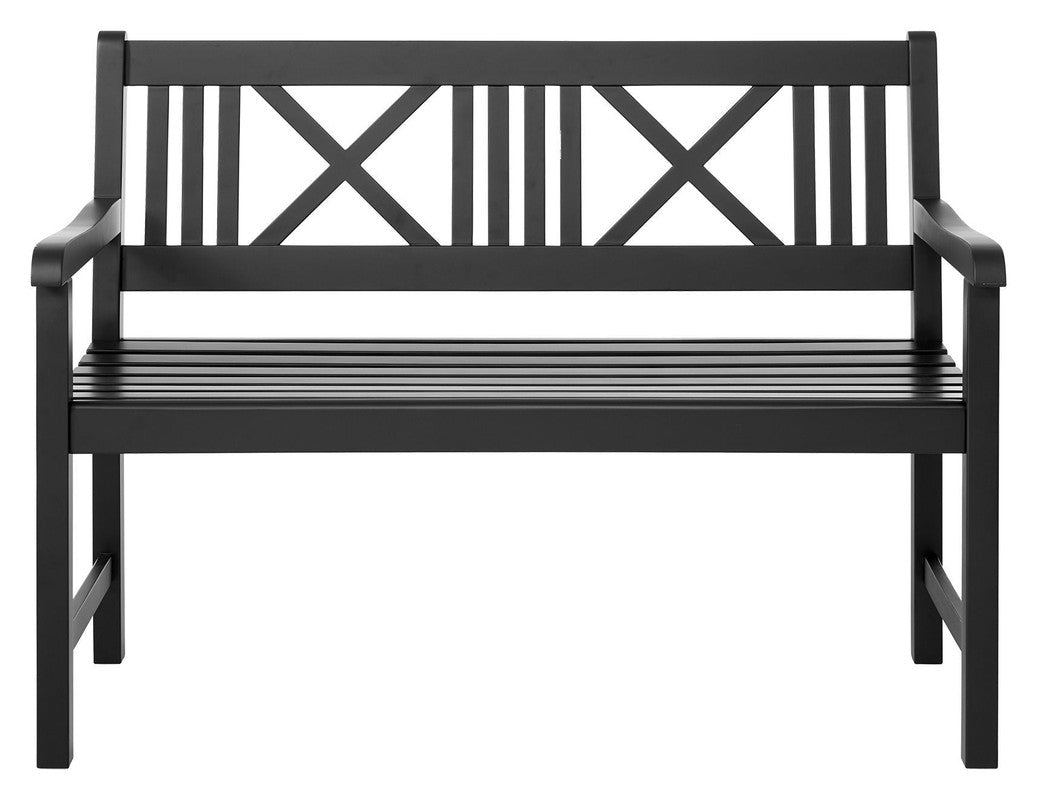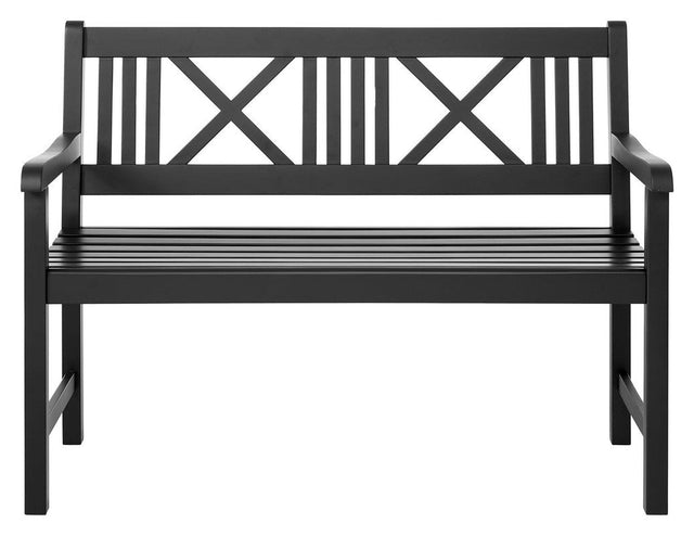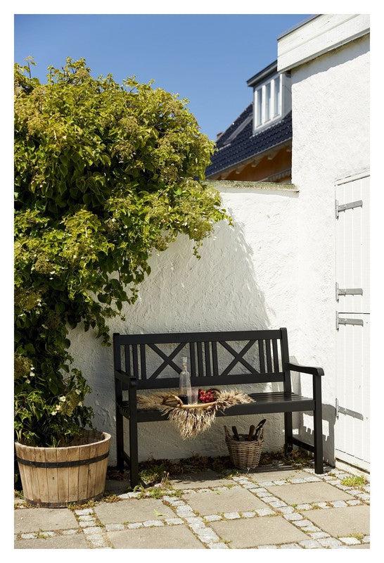 Få en smuk og stilfuld have med Løkken Havebænk. Den matte sorte farve og det solide træ giver en luksuriøs følelse af elegance og komfort.