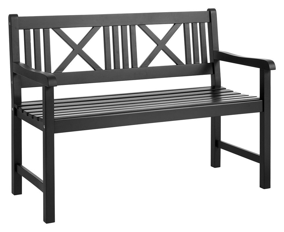 "Løkken Havebænk, Mat Sort, B120" er den perfekte tilføjelse til enhver have. Denne bænk er lavet af massivt træ og er malet i en elegant mat sort farve. Hynder kan tilkøbes for ekstra komfort. Med en længde på 120 cm passer denne bænk perfekt til enhver udendørs plads.