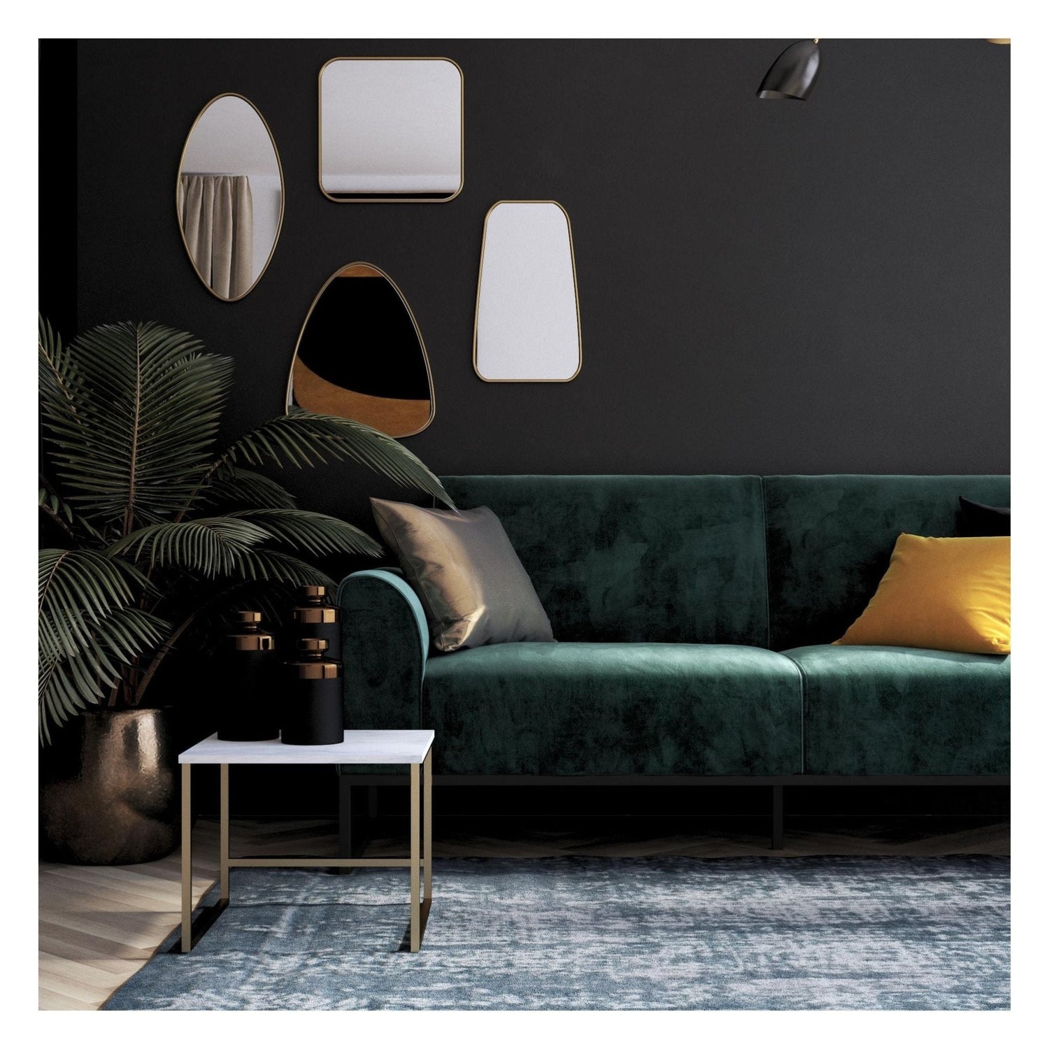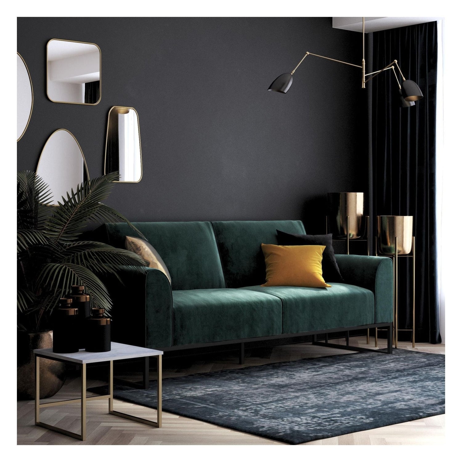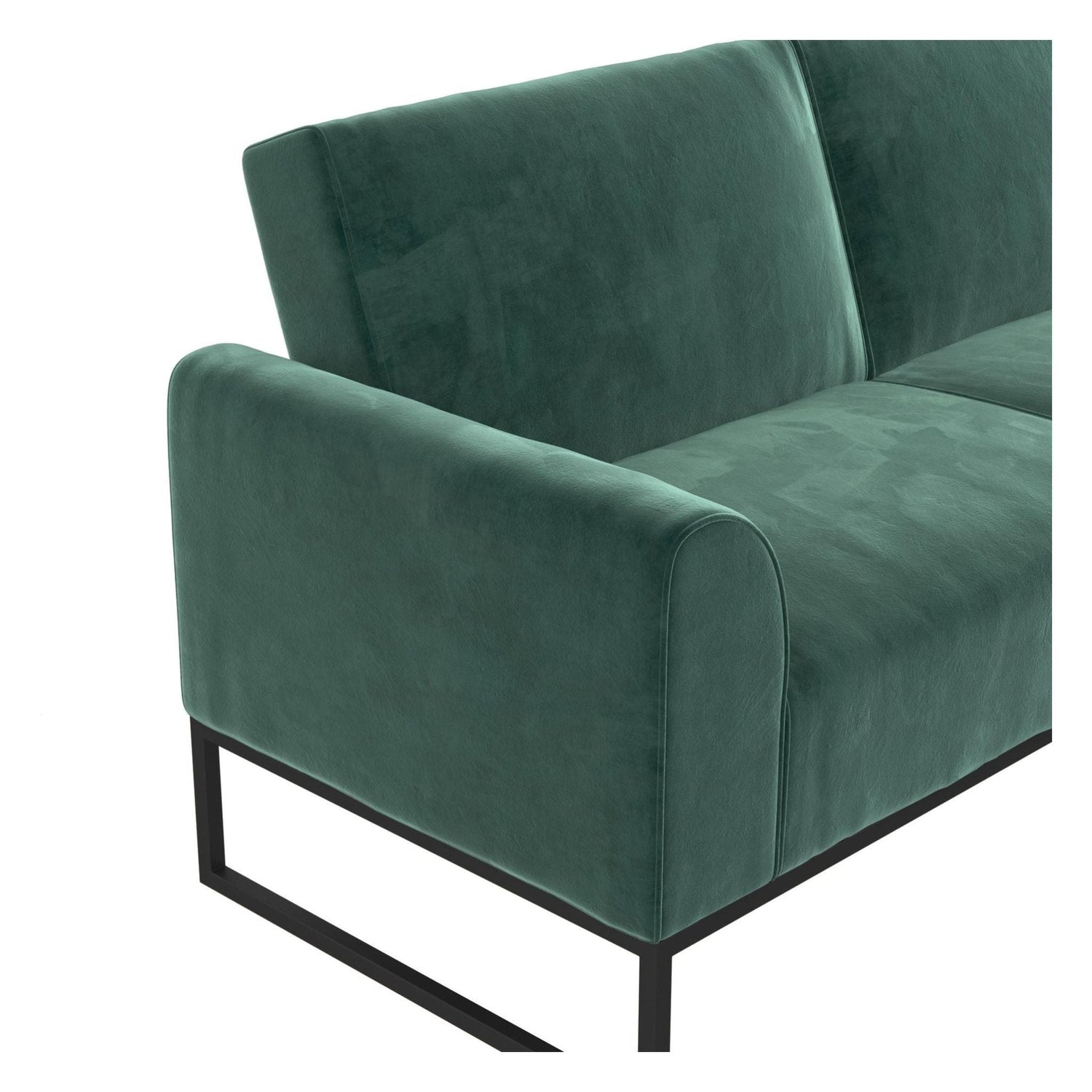 Adley Coil Sovesofa - Grøn fløjl er det perfekte møbel til at glamorisere dit hjem. Denne moderne sovesofa er et blikfang med sit fløjlsmateriale, afrundede armlæn og sorte metalben. Med sin split-back design kan du nemt justere ryglænet i tre positioner: sidde, hvile og sove. Takket være fjedrene er eftermiddagslur nu endnu mere behagelige. Giv dit hjem et løft med CosmoLiving Adley Coil Sovesofa og lad dine gæster føle sig helt specielle!