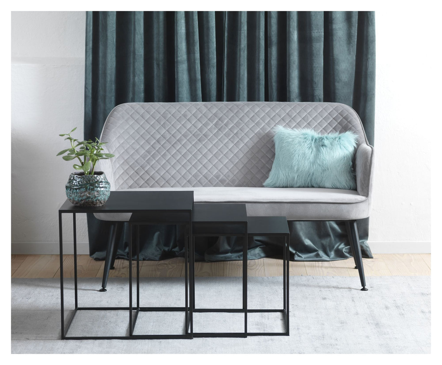 Berrie Loungesofa er en stilfuld og komfortabel loungesofa i grå velour med sort metalstel. Den er perfekt til afslapning og hygge i hjemmet. Sofaen er lavet af holdbare materialer som MDF, metal og velour. Med en sædehøjde på 42,5 cm er den behagelig at sidde i. Denne sofa er en del af BERRIE-serien fra uno furniture og har en Martindale-værdi på 25000 og en lysægthed på 4.