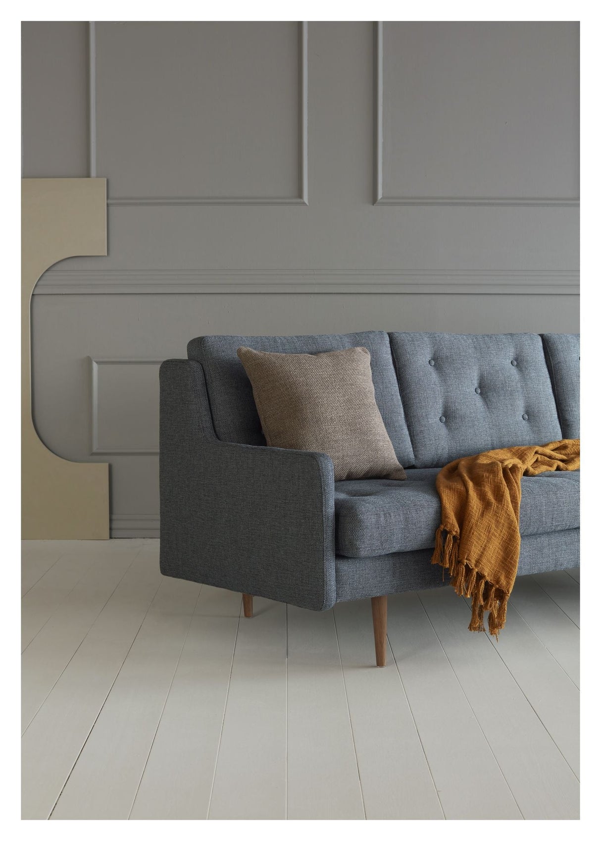 Denne Holme 3-personers sofa i blå stof er det perfekte valg til dit hjem. Med en sædehøjde på 41 cm og en sædedybde på 53 cm, er denne sofa både komfortabel og stilfuld. Benene i mørkbejdset eg tilføjer et elegant touch til det samlede design. Sofaen er fremstillet af holdbart stof, der har en pillingværdi på 4 og en Martindale-værdi på 100.000, hvilket sikrer langvarig kvalitet. Med sin smukke blå farve og moderne udseende vil denne sofa være et fantastisk tilføjelse til enhver stue.