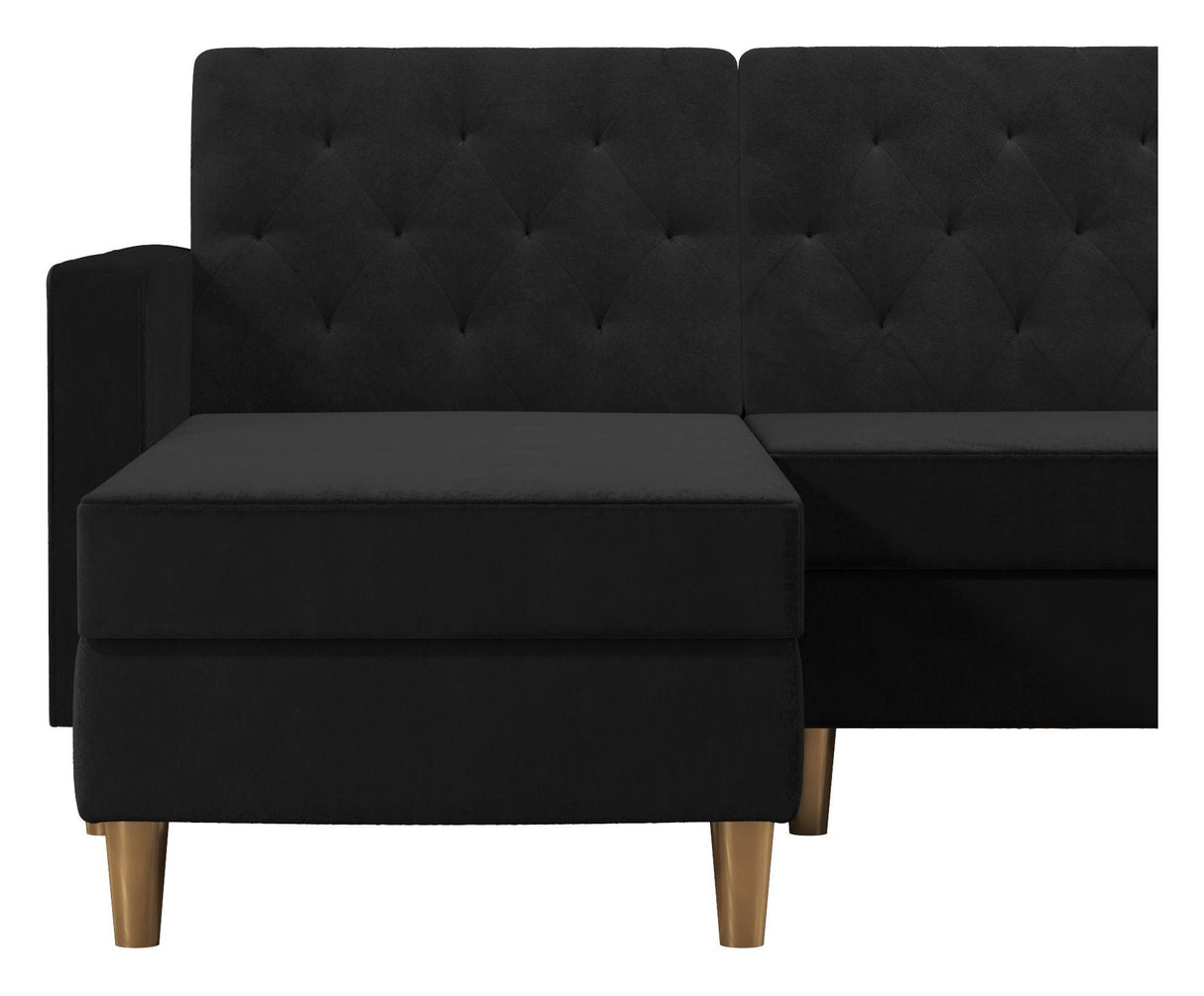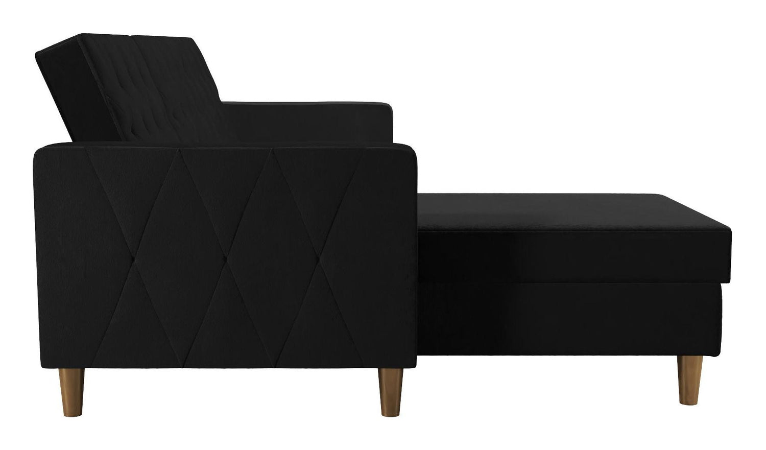 Liberty Sovesofa m. chaiselong - Sort er den perfekte løsning til små rum med sit kompakte design og funktionelle egenskaber. Den stilfulde sovesofa er lavet af fløjl og stof i farven sort. Vælg mellem flere farver. Med CosmoLiving Liberty Sectional Sofa Bed får du en enkel og stilfuld løsning til dit hjem.