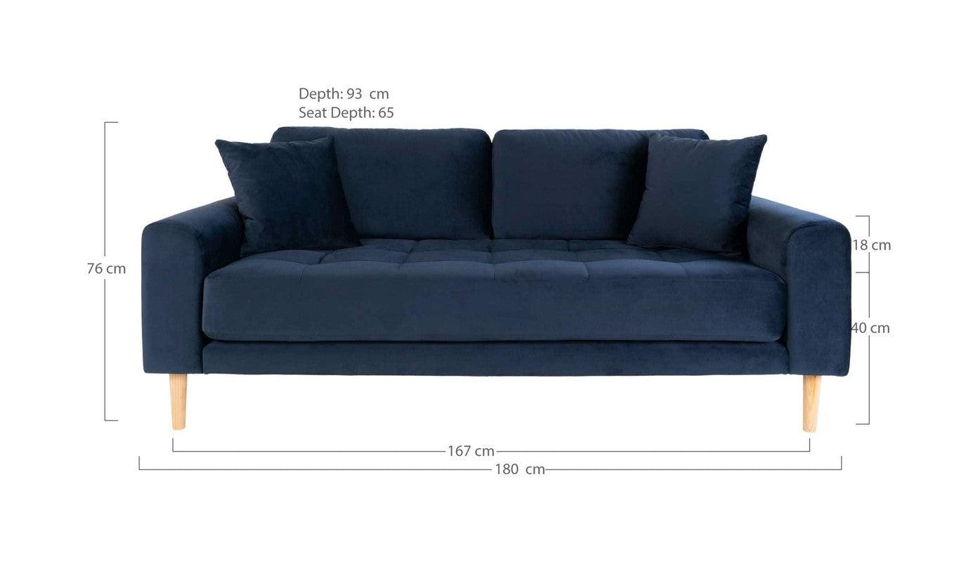 Lido 2,5-pers. Sofa, Mørkeblåt Velour