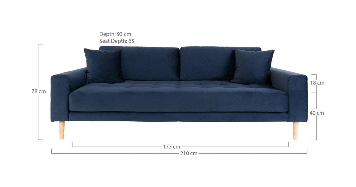 Lido 3-pers. Sofa, Mørkeblåt Velour