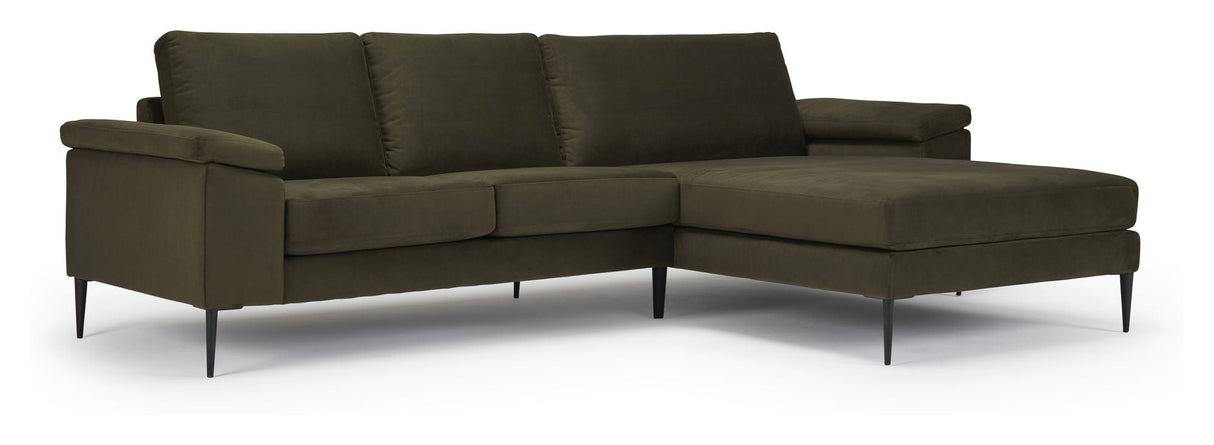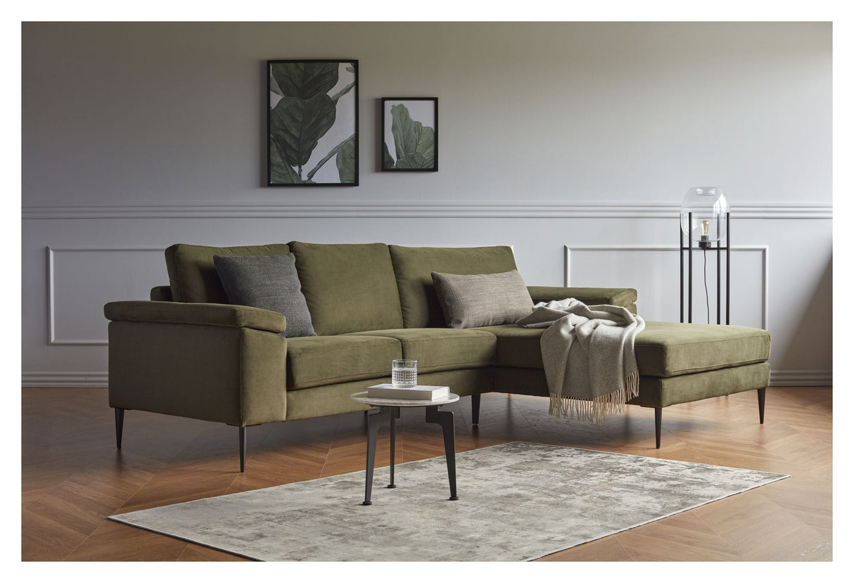 Nabbe 3-pers. Sofa m. chaiselong, højre, grøn stof