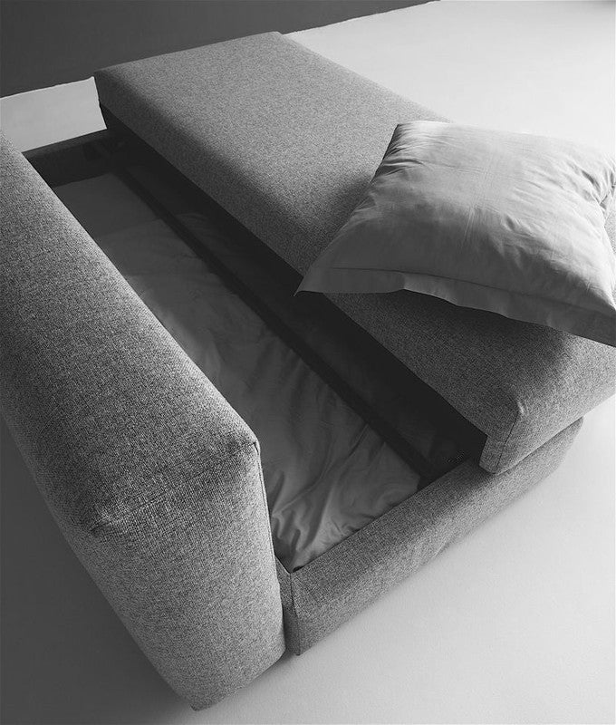 Osvald sovesofaen i grå har et moderne og skandinavisk design, der passer til de fleste indretninger i de danske hjem. En sovesofa er en god løsning til ekstraværelset, stuen eller teenageværelset, hvor der kan være brug for en seng til overnattende gæster. Osvald sovesofaen har en integreret opbevaringsplads, som er perfekt til ekstra dyner og sengelinned. Sovesofaen har en stål ramme som støtter pocket springmadrassen. Tekstilet er gråt og du kan derfor tilfører puder og plaider i forskellige farver for et mere personligt udtryk. Osvald sovesofaen findes også med sort stof.