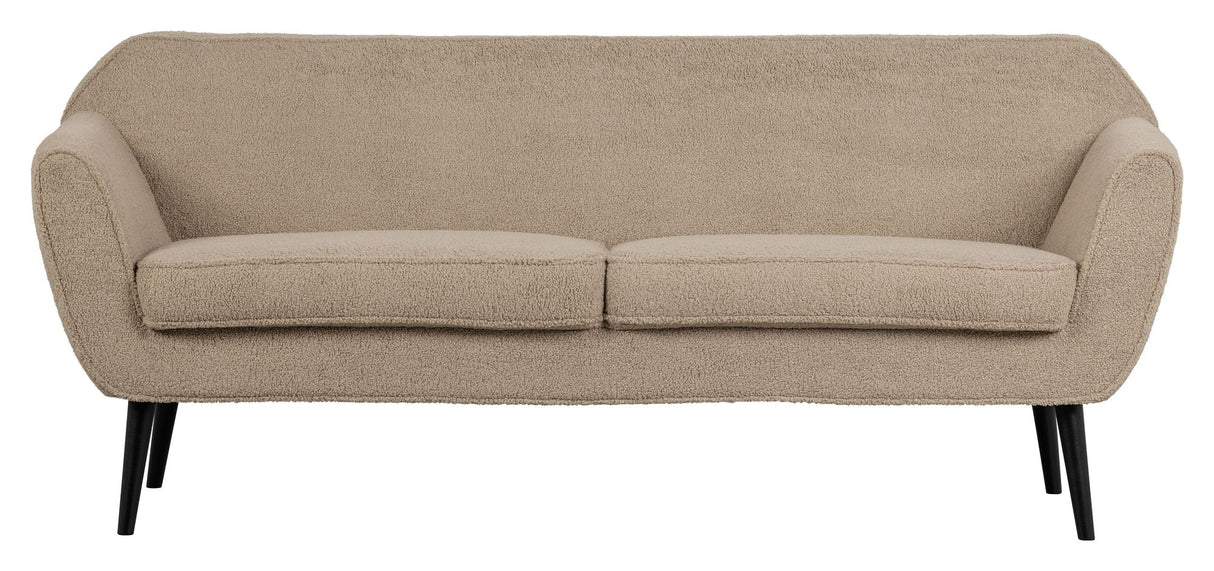 Rocco 2-pers. Sofa, Teddy Sand er en stilfuld og komfortabel sofa, der vil tilføje varme og hygge til ethvert rum. Sofaen er betrukket med sandfarvet bamsestof af høj kvalitet, og de sorte birkeben giver et elegant touch. Med en sædedybde på 56 cm og en sædehøjde på 47 cm er denne sofa perfekt til afslapning. Filtpuder anbefales til hårde gulve. Lavet af holdbart polyester.