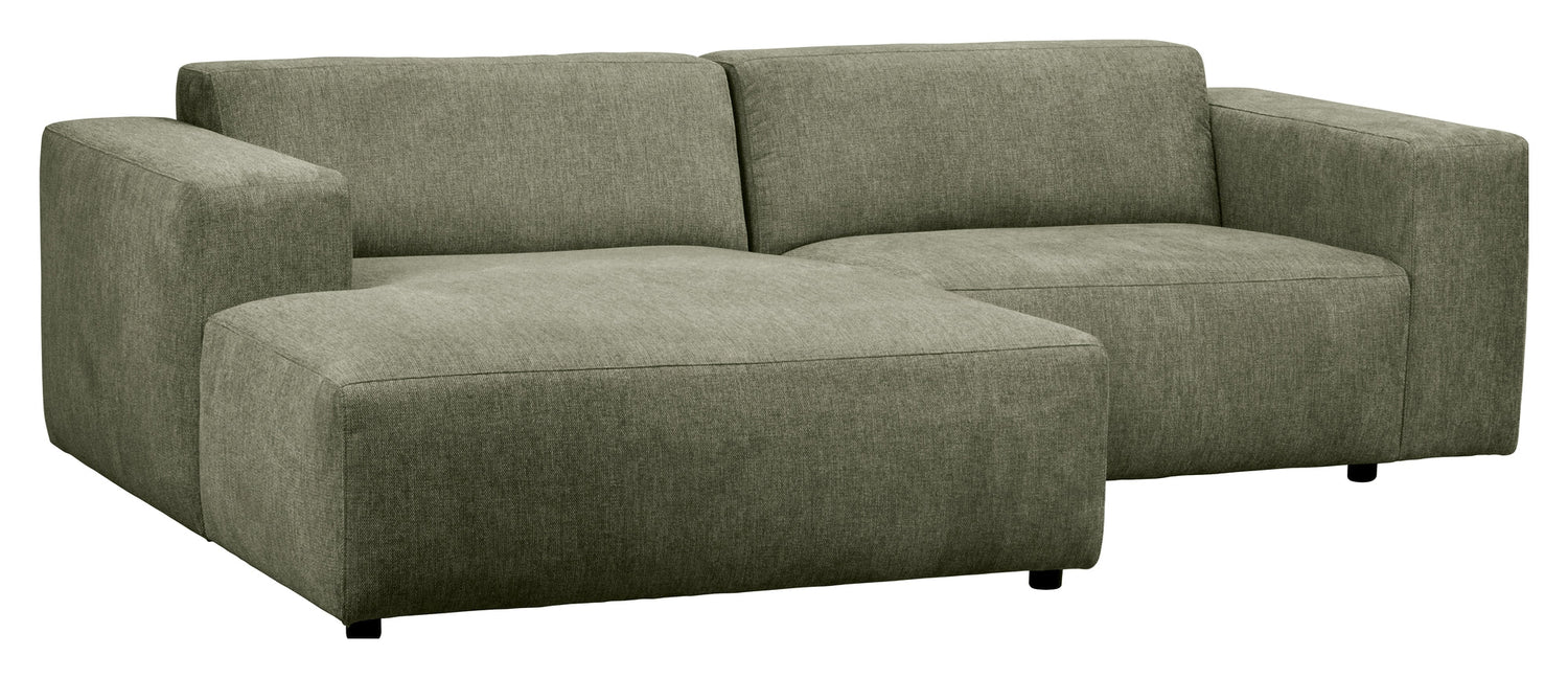 Willard, 3-pers. chaiselong venstre - grøn er en minimalistisk og moderne loungesofa med en varm og indbydende design. Den grønne farve i det tidløse kvalitetstof giver et jordnært udtryk. Med den dejlige chaiselong får du ekstra siddepladser, perfekt til et rum med begrænset plads. Sædehøjde: 41 cm, sædedybde: 64 cm, sædebredde: 180 cm, maks belastning: 330 kg. Materiale: Stof.