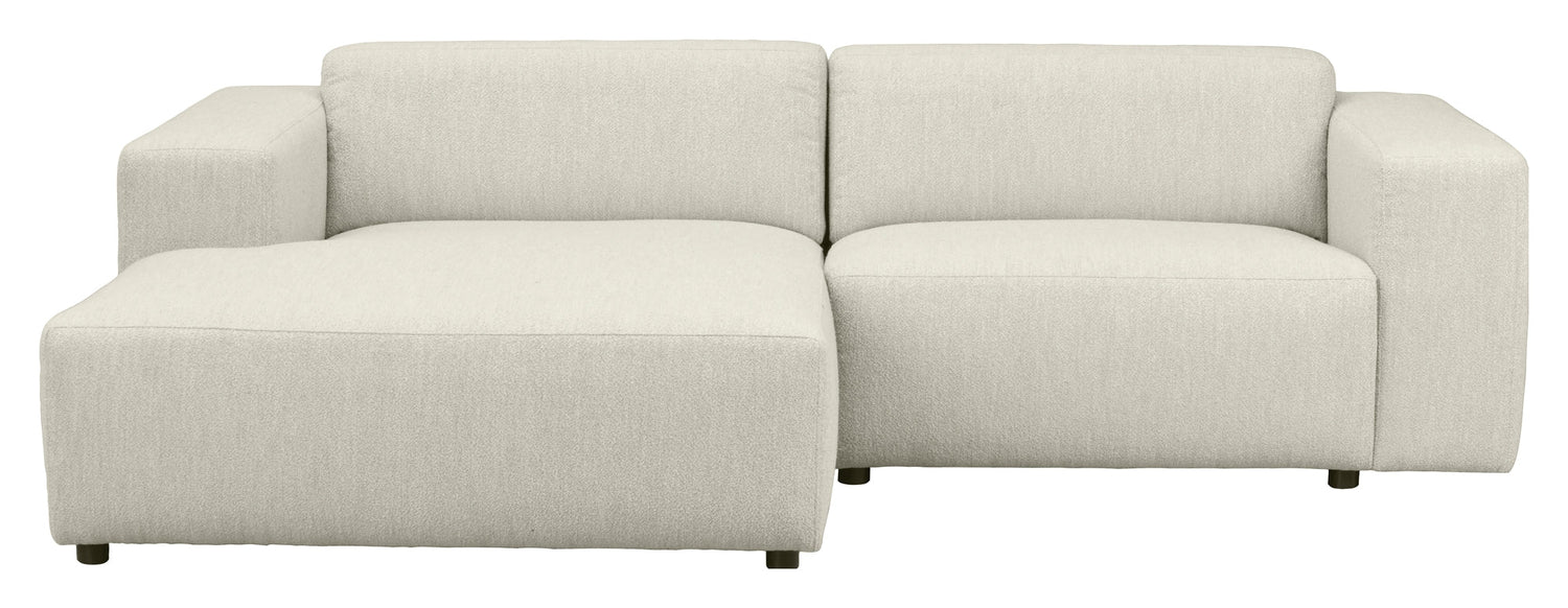 Willard er en minimalistisk og moderne loungesofa med en smuk og trendy hvid bouclé betræk. Den bløde og runde design skaber en varm og indbydende atmosfære. Den dejlige chaiselong giver ekstra siddepladser, perfekt til dig med begrænset plads i stuen. Willard er en bygbar modulsofa, der kan tilpasses efter dine ønsker. Den er lavet af stof og produceret i Europa med FSC-certificeret træ.