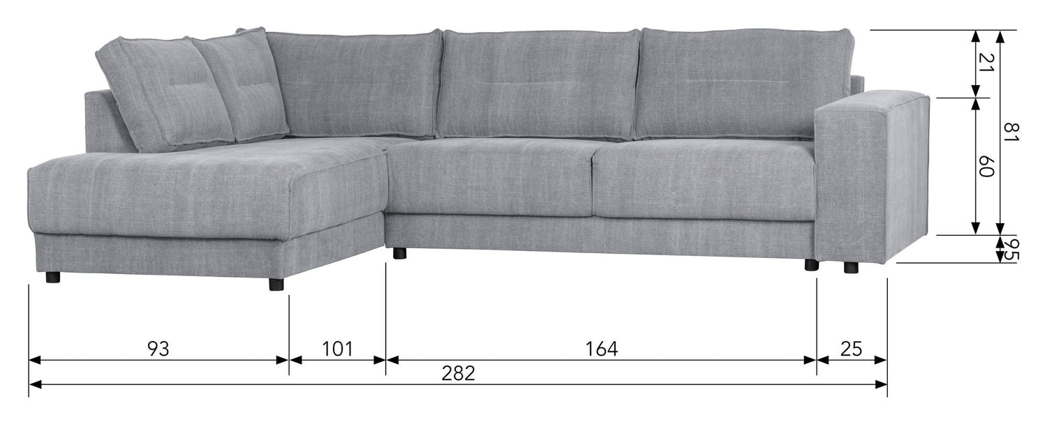 Woood Randy Sofa m. venstrevendt chaiselong, Grå