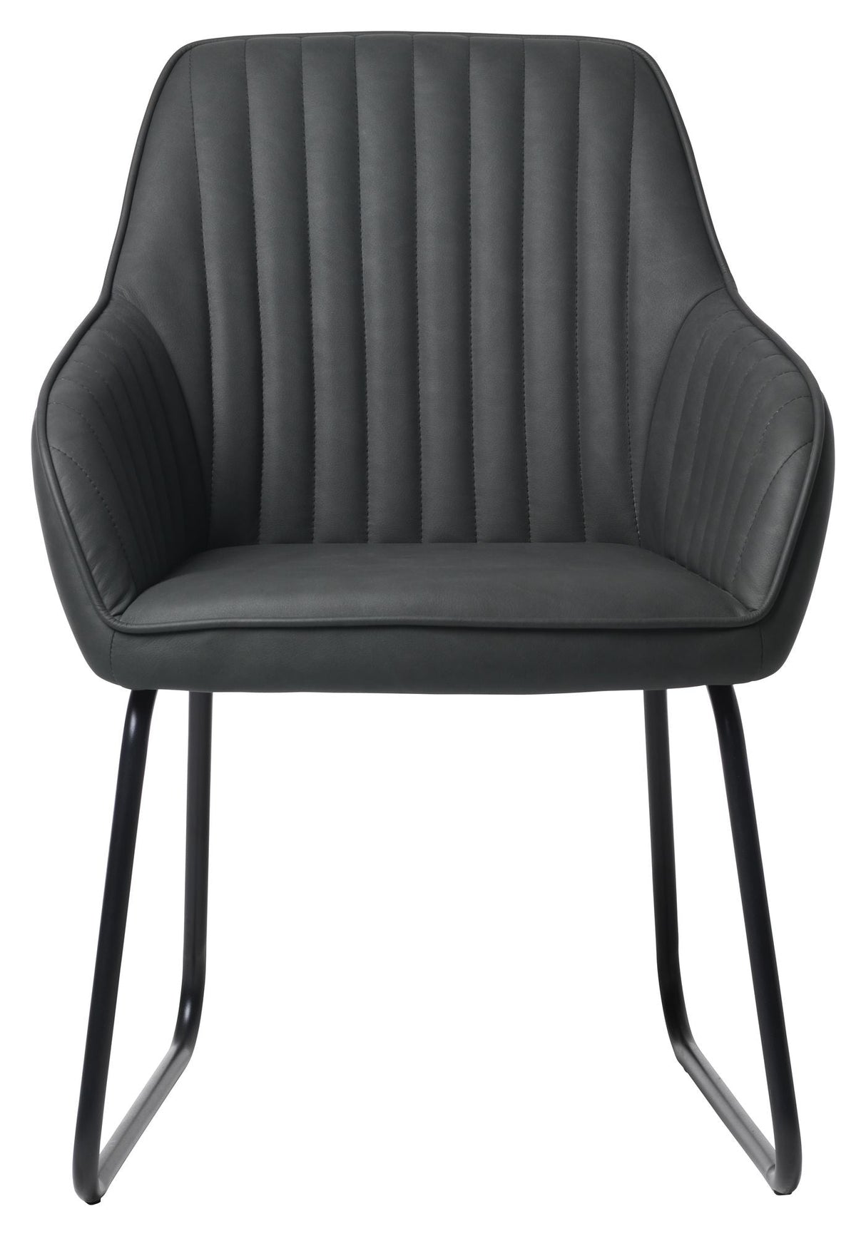 Denne Brooks spisebordsstol med armlæn er perfekt til at tilføje stil og komfort til dit spiseområde. Stolen har en smuk mørkegrå PU-polstring med vertikale syninger på indersiden, der giver et elegant look. Det sorte slebne metalstel tilføjer et moderne touch. Med en sædehøjde på 47 cm er den ideel til spisebordet. Sælges kun i sæt af 2.