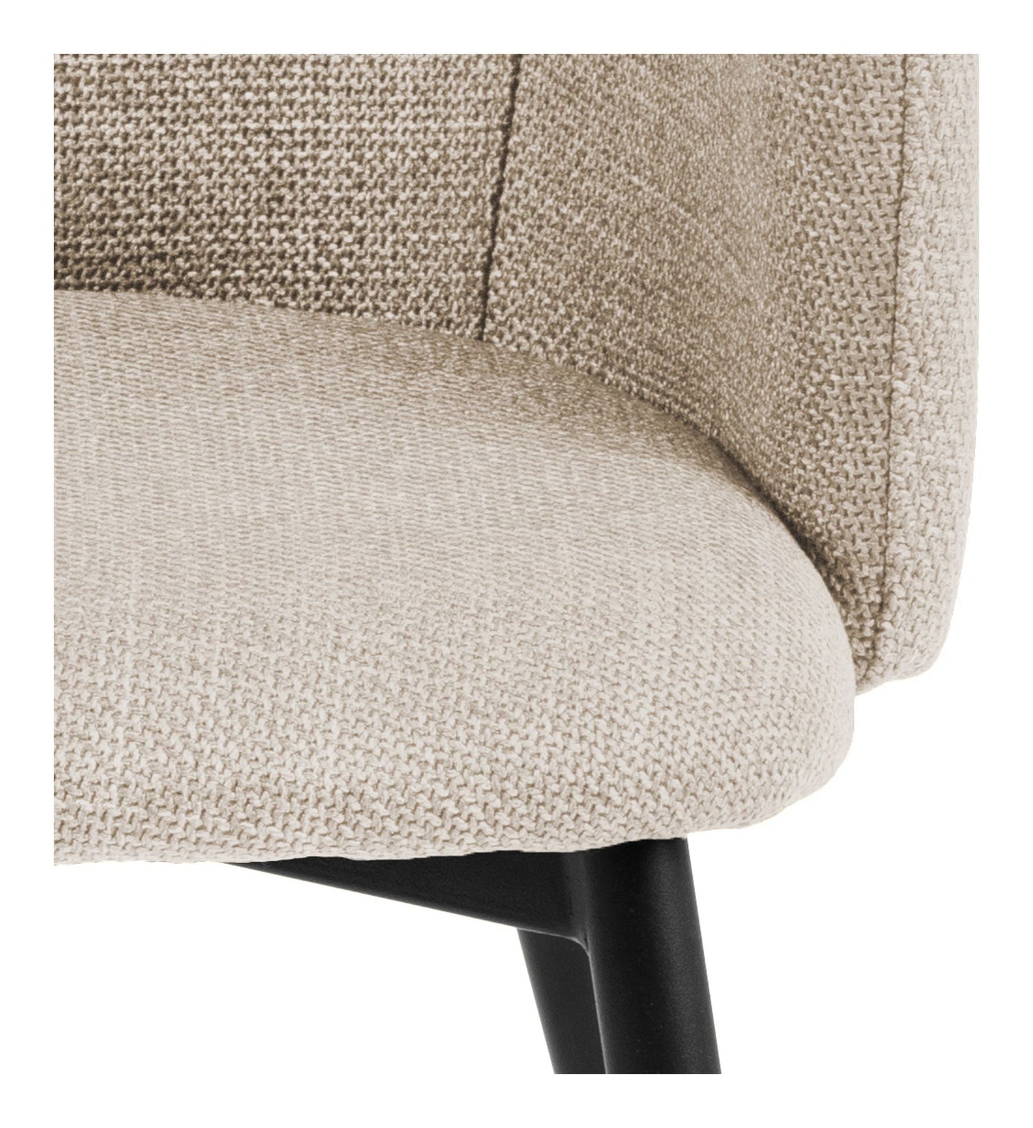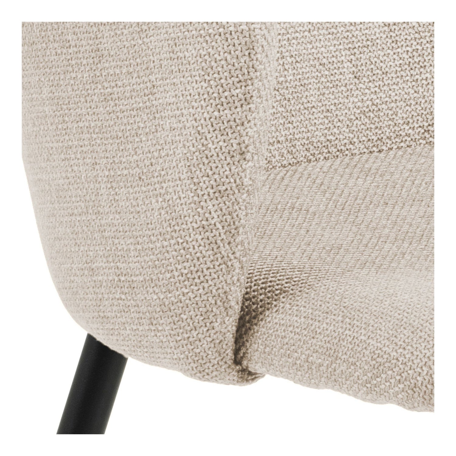 Ilsa spisebordsstol med armlæn, Basel stof beige 24, Stel mat sort ru pulverlakeret stål, med lynlås