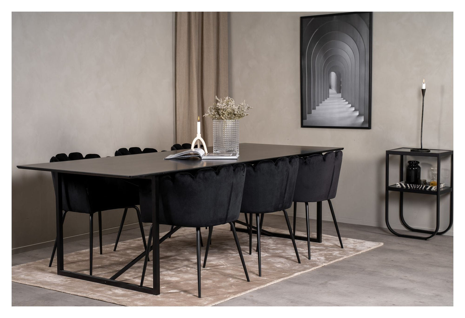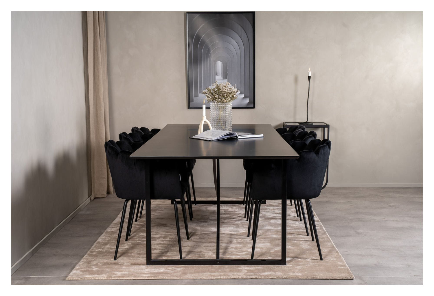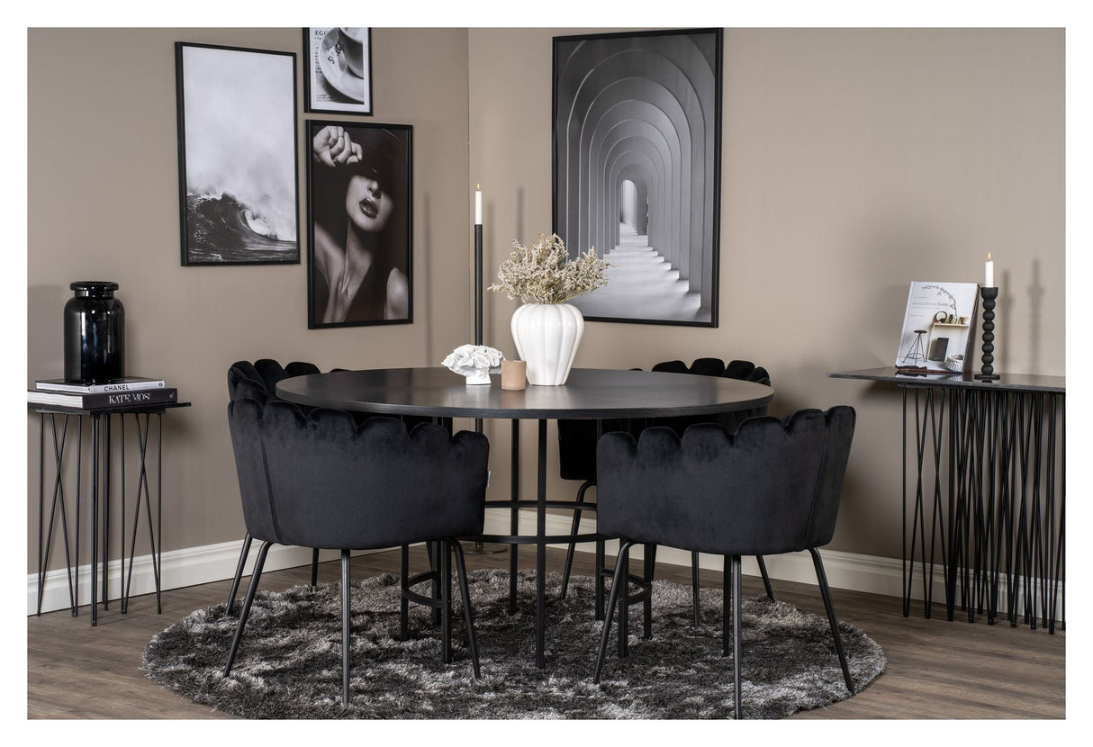 Limhamn Spisebordsstol m. armlæn, Sort velour