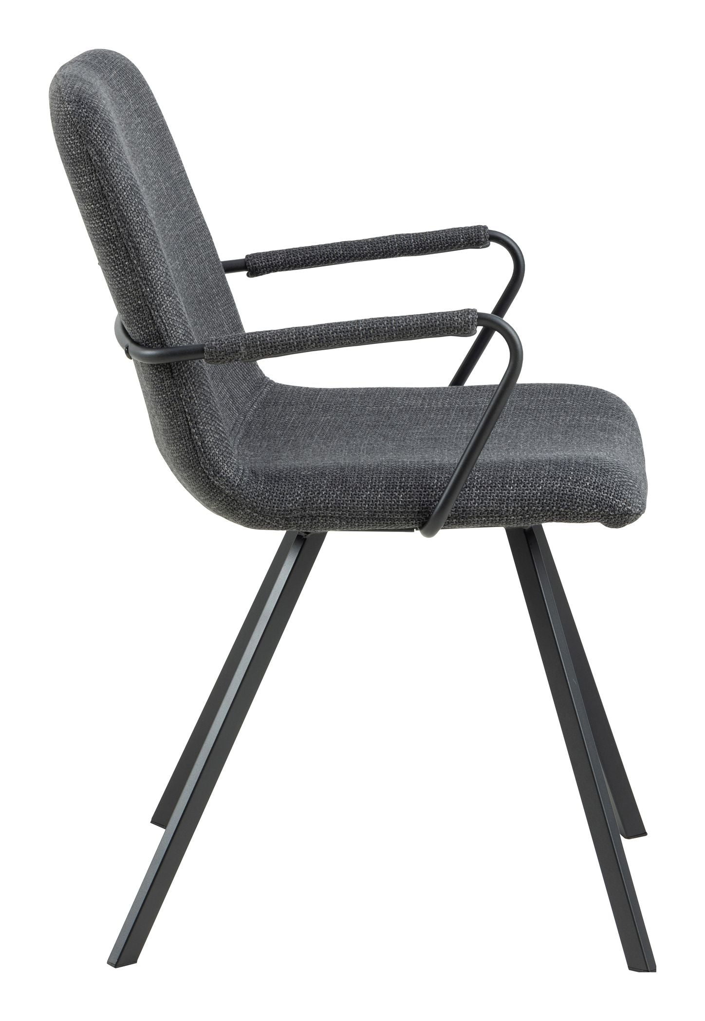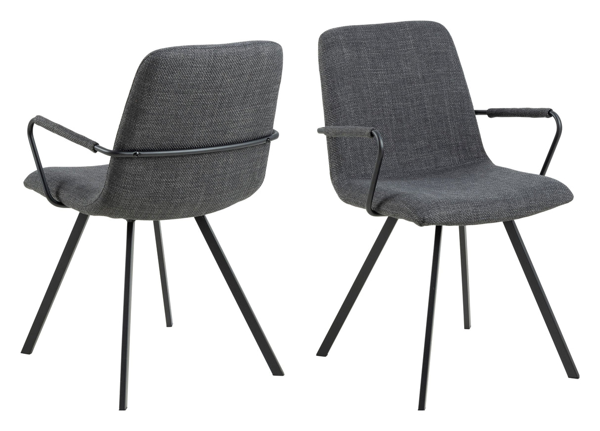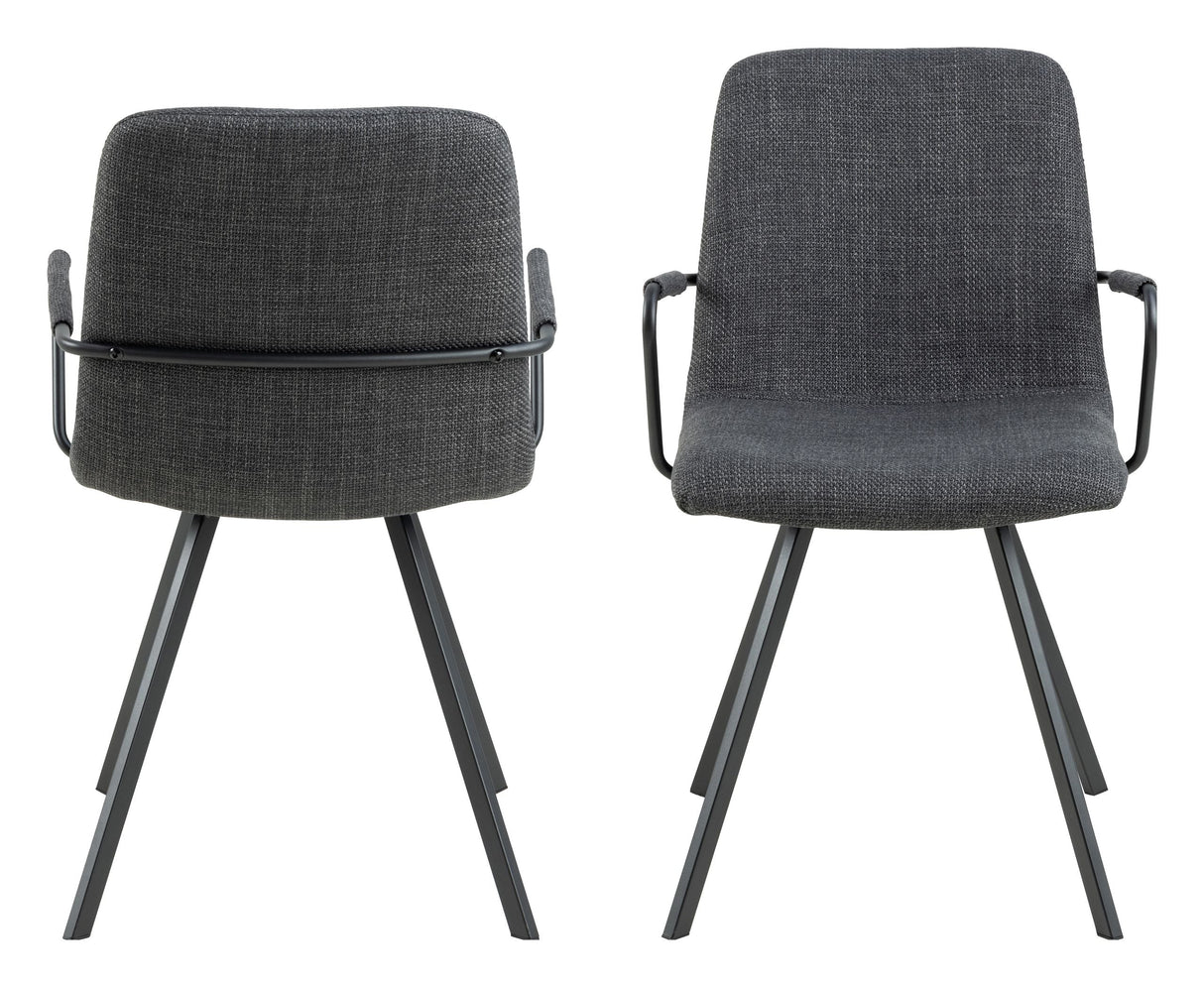 Selina spisebordsstol med armlæn, Basel stof mørkegrå 19, Stel mat sort ru pulverlakeret stål