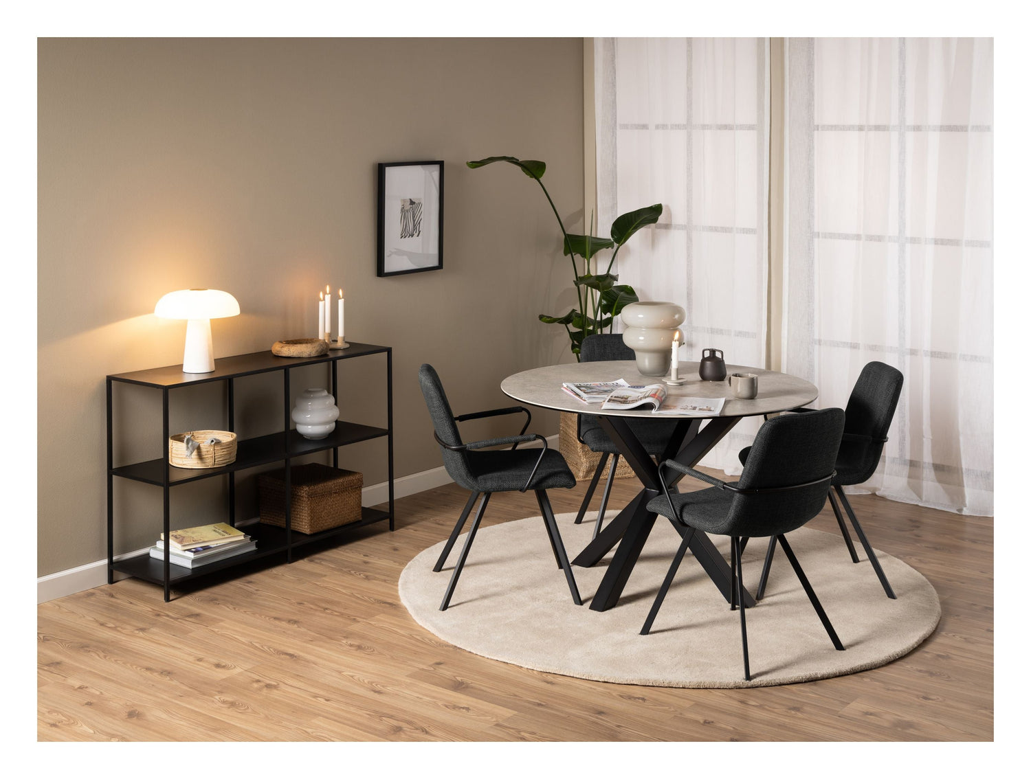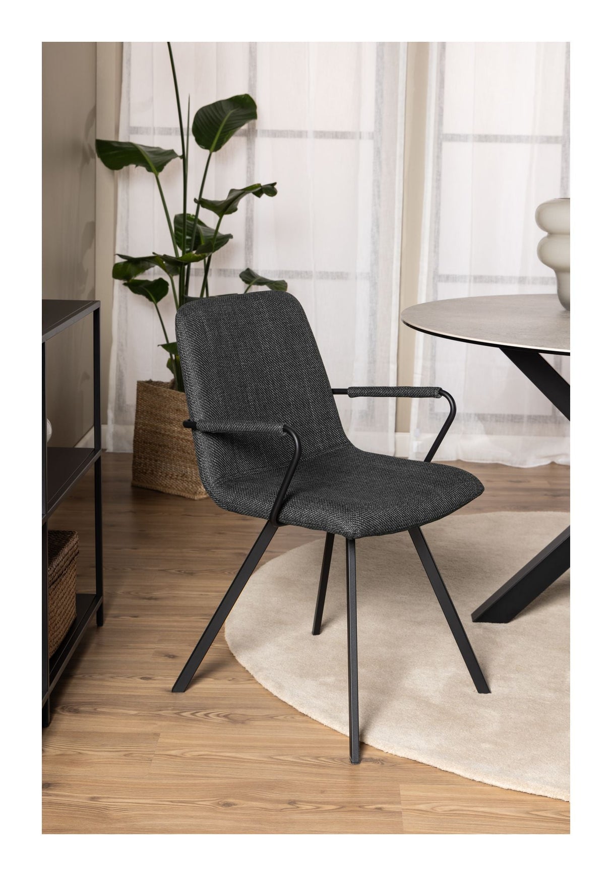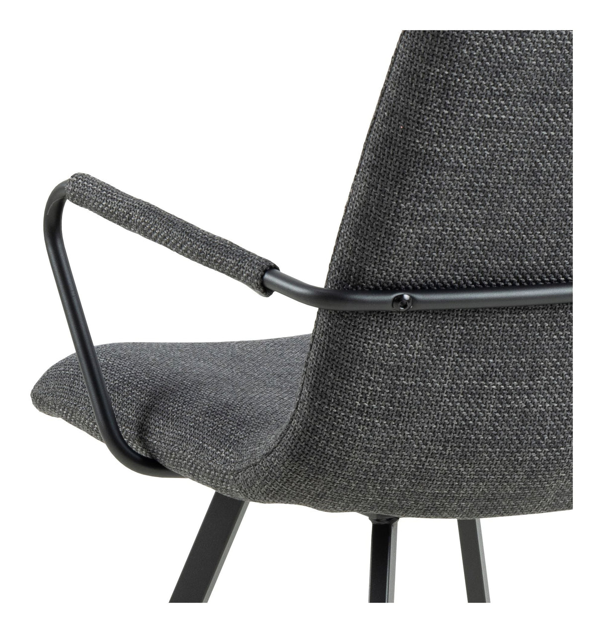 Selina spisebordsstol med armlæn, Basel stof mørkegrå 19, Stel mat sort ru pulverlakeret stål
