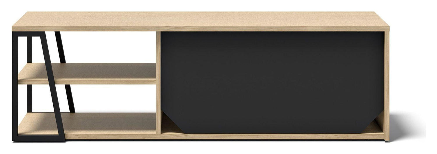 Albi TV-Bord 145, Lys eg/Sort Metal, 145x45x45
