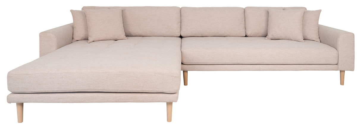 Lounge sofa m. venstrevendt chaiselong, Sand m. puder og natur træben
