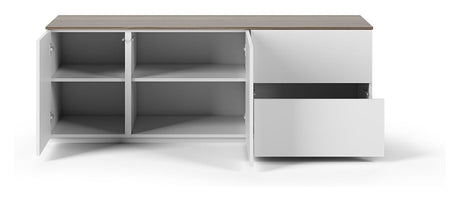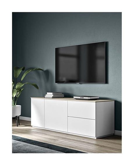 Join TV-Bord m. 2 låger og 2 skuffer, Mat hvid/Eg Top, 180x50x57