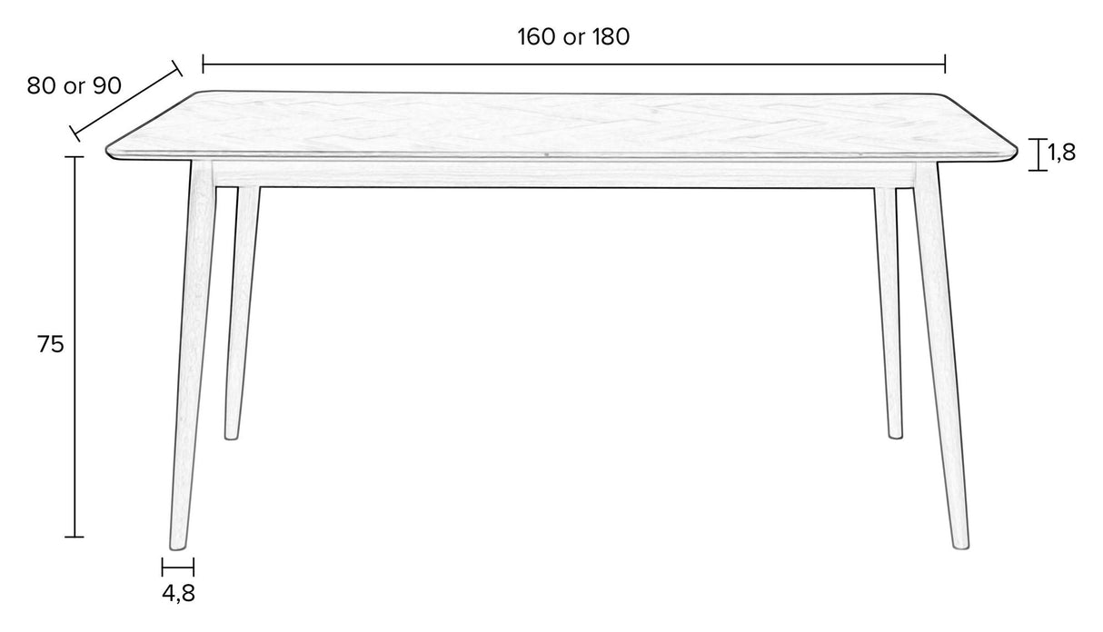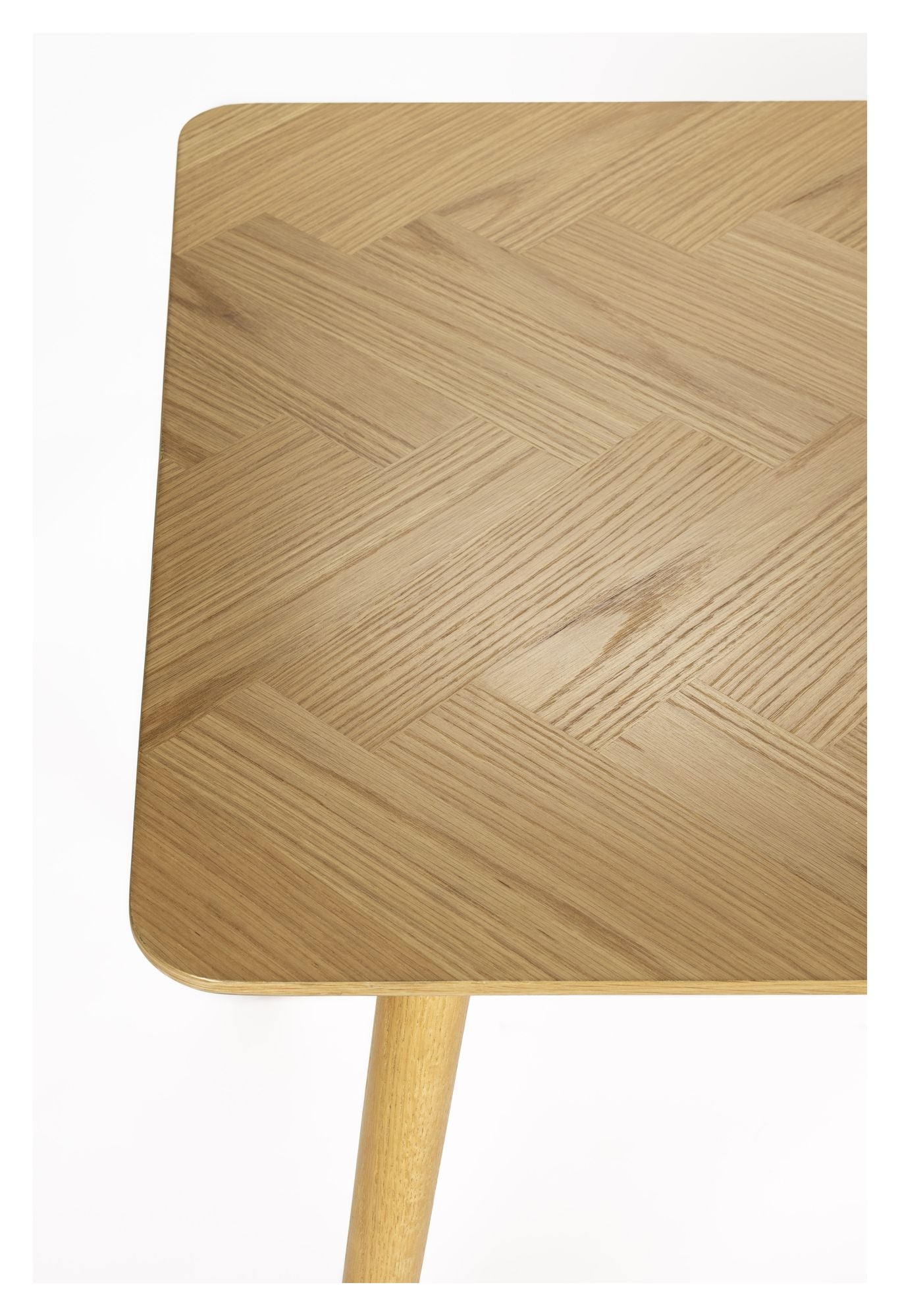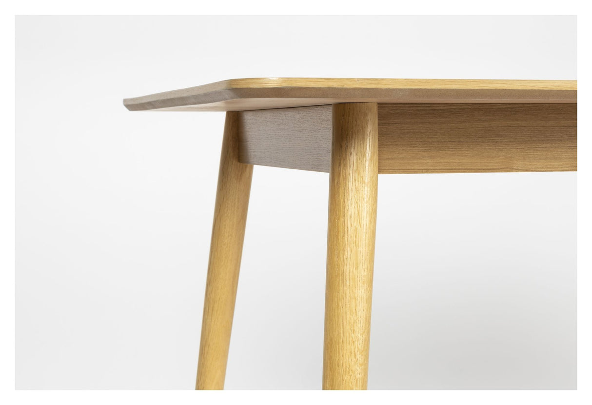 - Materiale: Eg, MDF (oak veneered poplar MDF table top with solid oak legs.)