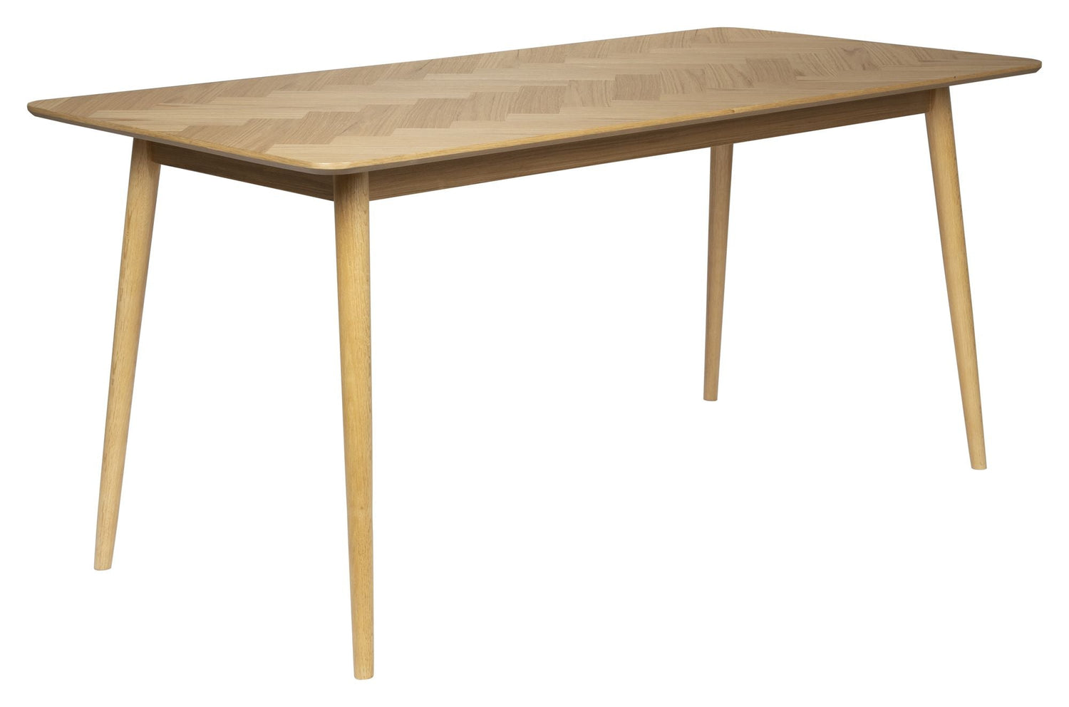 homii Fabio Spisebord 180x90 - Natur er et rektangulært spisebord i en naturlig farve. Bordet har en maksimal belastning på 60 kg og er lavet af eg og MDF. Det har en bordplade af egetræsfiner og massiv egetræsben.