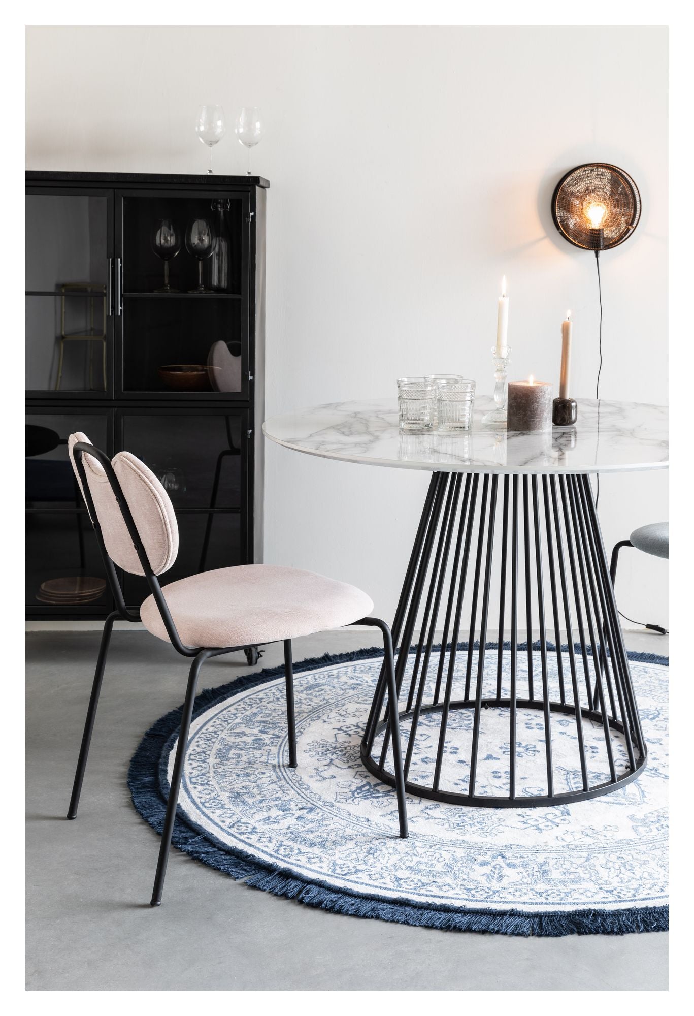 Homii Floris Spisebord Ø104 - Hvid er det perfekte valg til dit spisestue. Med sin runde form og elegante hvide farve tilføjer dette bord en stilfuld touch til enhver indretning. Bordpladen er lavet af MDF-træ med en hvid marmor papir finish, og den er holdbar nok til at bære en maksimal belastning på 80 kg. Det elektroplaterede jernstel med plastikdutter sikrer stabilitet og beskytter dine gulve. Skab en hyggelig atmosfære og nyd dine måltider med dette smukke spisebord.