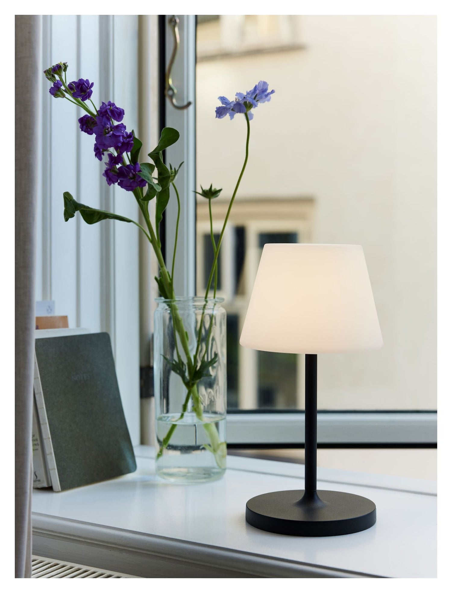 Denne "New Northern Bordlampe - Mat sort" er designet af Michael Waltersdorff og er lavet af aluminium og plastik. Lampen har en diameter på 15 cm og en længde på ledningen på 120 cm. Den er dæmpbar og har en IP44-klassificering, hvilket gør den velegnet til udendørs brug. Med LED-teknologi er den energieffektiv og giver et behageligt lys. Perfekt til at skabe stemning på terrassen eller i haven.