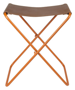 Nola Foldestol m. læder - Orange er en stilfuld og praktisk foldestol fra Broste Copenhagen's Nola-serie. Stolen har en smuk orange farve, der tilføjer liv og energi til enhver indretning. Den er lavet af holdbare materialer som jern og læder, og kan bære op til 100 kg. Perfekt til både indendørs og udendørs brug.