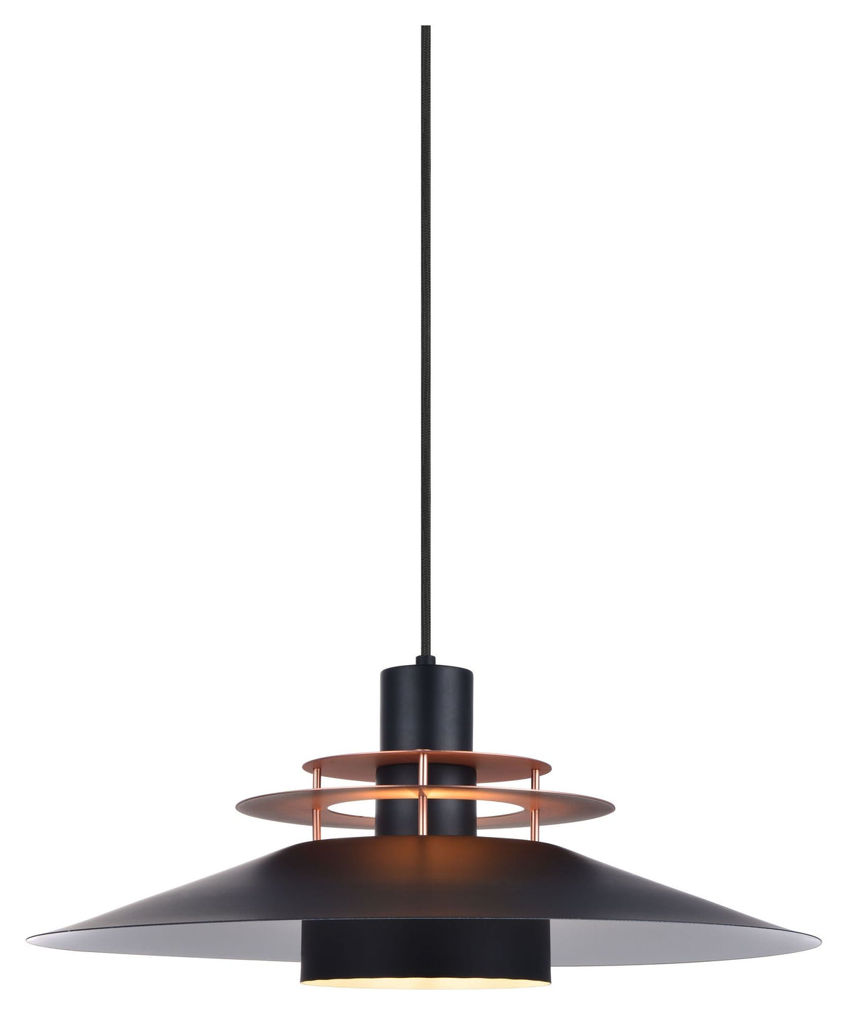 Rivoli Pendel Ø50 - Sort/kobber er en elegant og stilfuld lampe designet af Tom Stepp. Med sin kobberfarvede skærm og sorte detaljer tilføjer den et moderne og sofistikeret touch til ethvert rum. Lampen har en diameter på 50 cm og bruger en E27 fatning med en maksimal watt på 60W. Den medfølgende ledning er 250 cm lang, hvilket giver fleksibilitet ved placeringen. Lavet af metal, er denne pendel både holdbar og stilfuld. Den har en IP20 klassificering og er velegnet til indendørs brug.