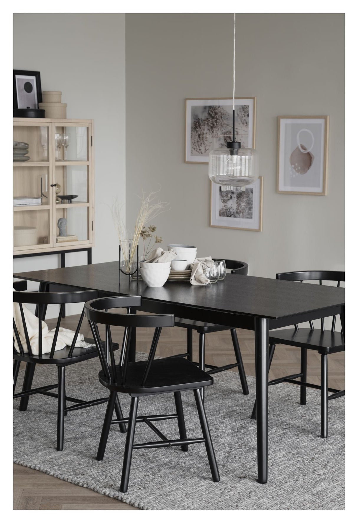 "Få et moderne og sofistikeret look i dit hjem med Lotta spisebordet. Den sorte askefinér og det solide gummitræ giver en luksuriøs følelse, der vil imponere dine gæster."