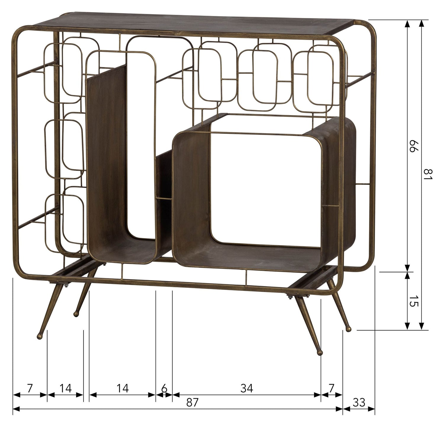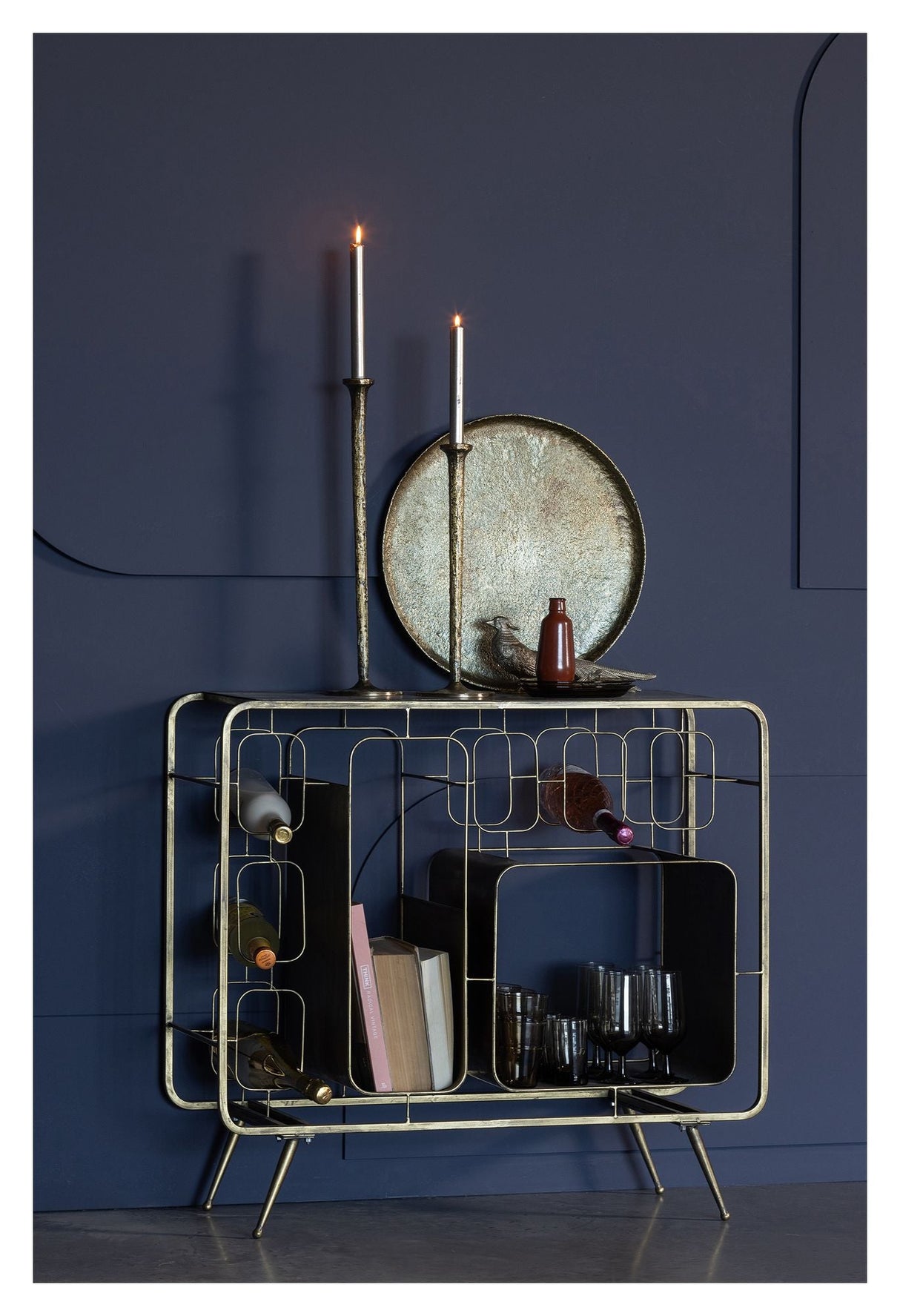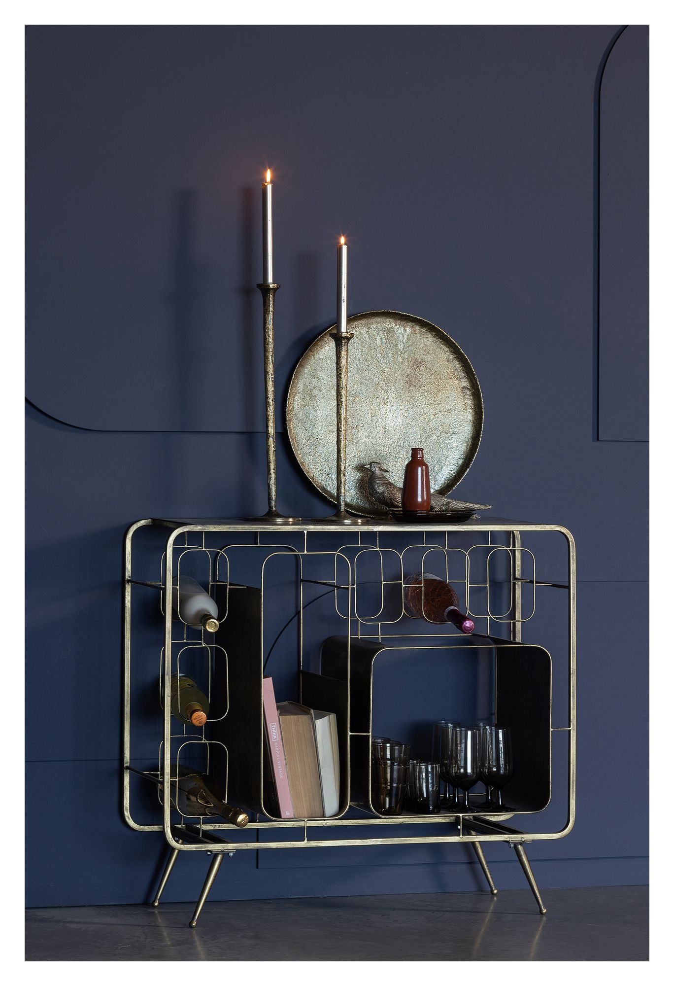 "Opbevar dine vine på en elegant og stilfuld måde med Capo Vinreol. Denne vinreol er lavet af holdbart jern og har en smuk antik messing farve. Vis dine vine frem med stolthed og tilføj et strejf af luksus til dit hjem."