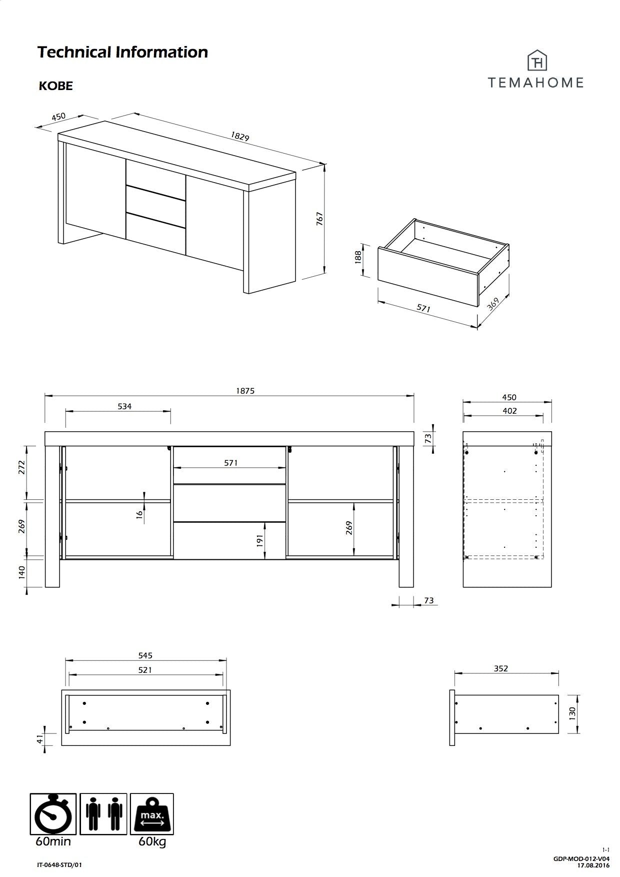 - Dimensioner: Højde: 79 , Bredde: 188 , Dybde: 45