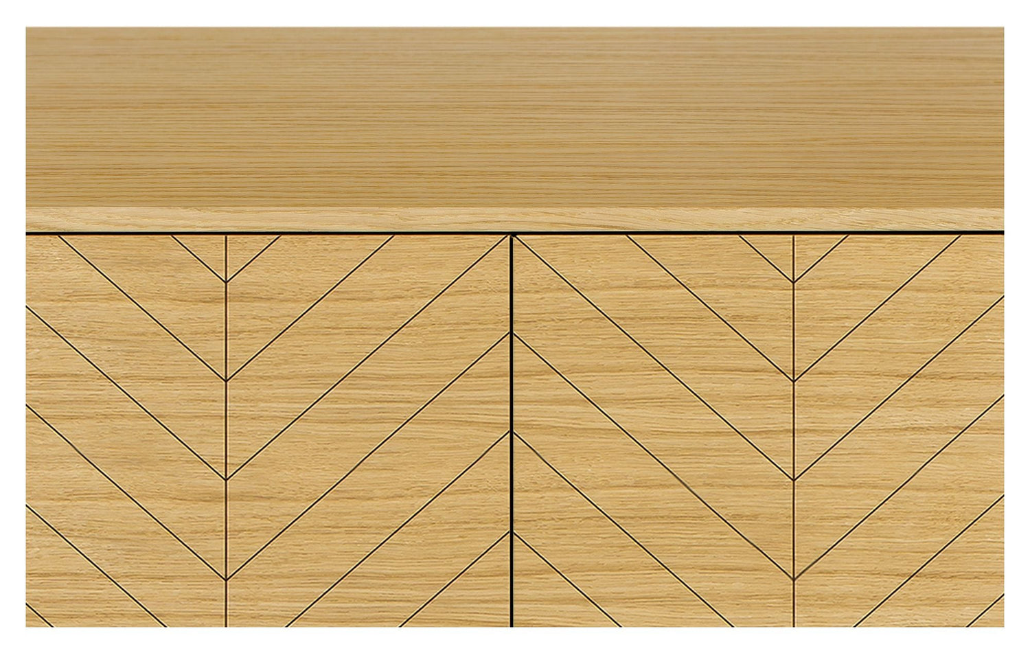 Den Woodman Camden Højskænk Herringbone er en stilfuld og moderne opbevaringsløsning til dit hjem. Med fire låger med push-to-open funktion og justerbare hylder, kan du nemt organisere og opbevare dine ejendele. Den har et smukt herringbone mønsterprint i sort, der tilføjer et elegant touch til enhver indretning. Benene i sort giver et moderne udseende, og materialet MFC sikrer holdbarhed og kvalitet. Perfekt til at skabe orden og stil i dit hjem.