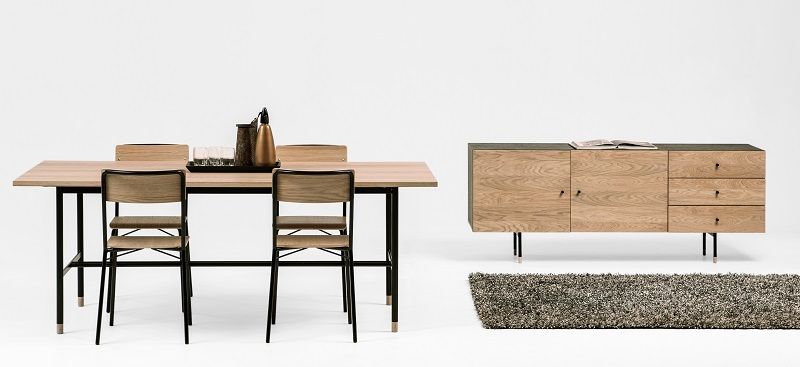 - Materiale: Finer (The table top is made of oak veneered particleboard. Top is painted with whitewashed lack, gloss 5%. Legs and frame made of steel tube which is painted matt black powder coated paint.)