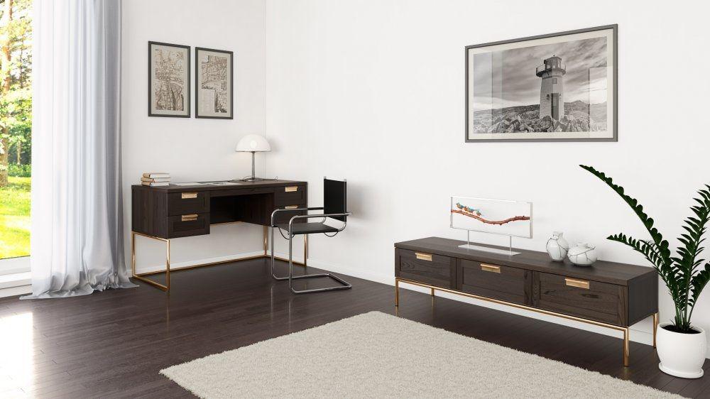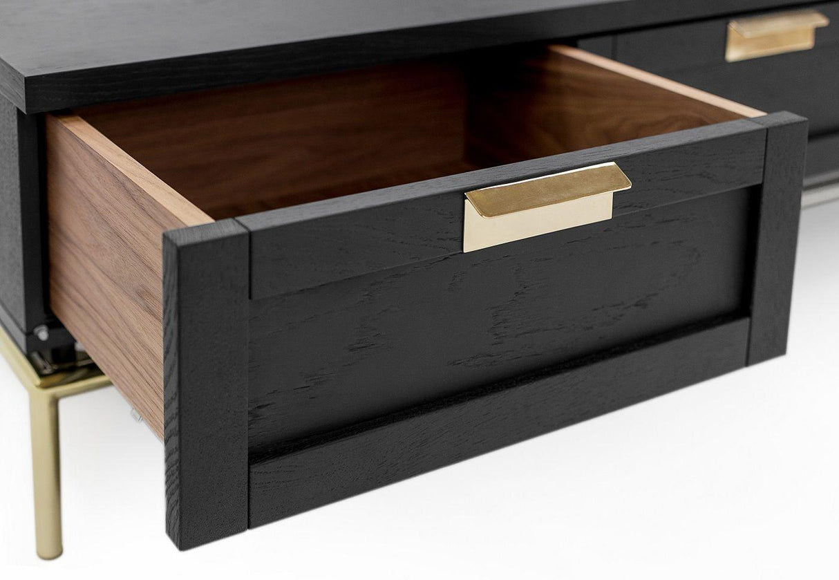 Pimlico Lav Skænk er en stilfuld og funktionel opbevaringsløsning til dit hjem. Den er lavet af finér og har skuffefronter i massiv eg, der tilføjer et naturligt og varmt udtryk. Med sin messingbelagte metalgreb og ben samt et kabinet i finér, har denne skænk en elegant og moderne æstetik. Den har en frihøjde på 15 cm, hvilket giver et let og luftigt udseende. Med målene 100x44x40 cm passer den perfekt ind i ethvert rum.