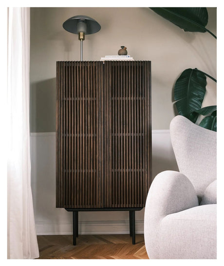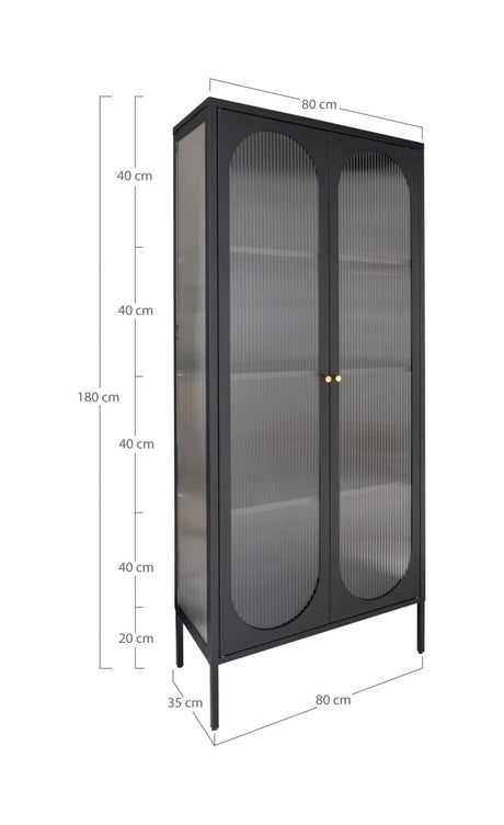 Adelaide Vitrineskab Sort m. riflet glasdør, 35x80x180