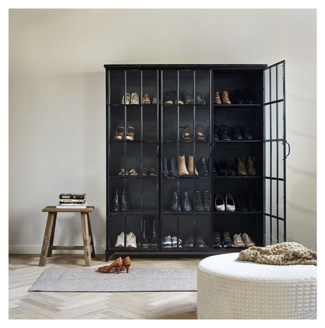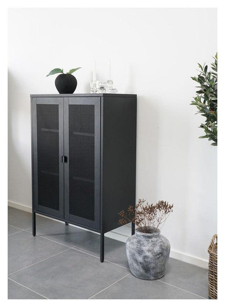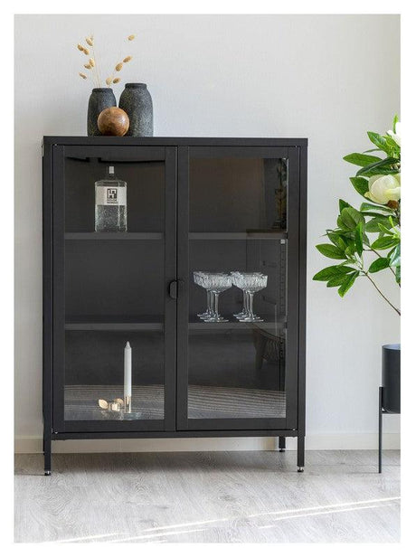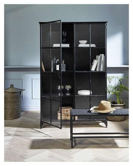 Newcastle Vitrineskab m. 2 glaslåger, Sort metal