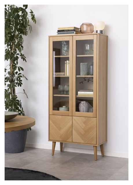 Marte Vitrineskab, Hvidpigmenteret massiv og egefinér, H148
