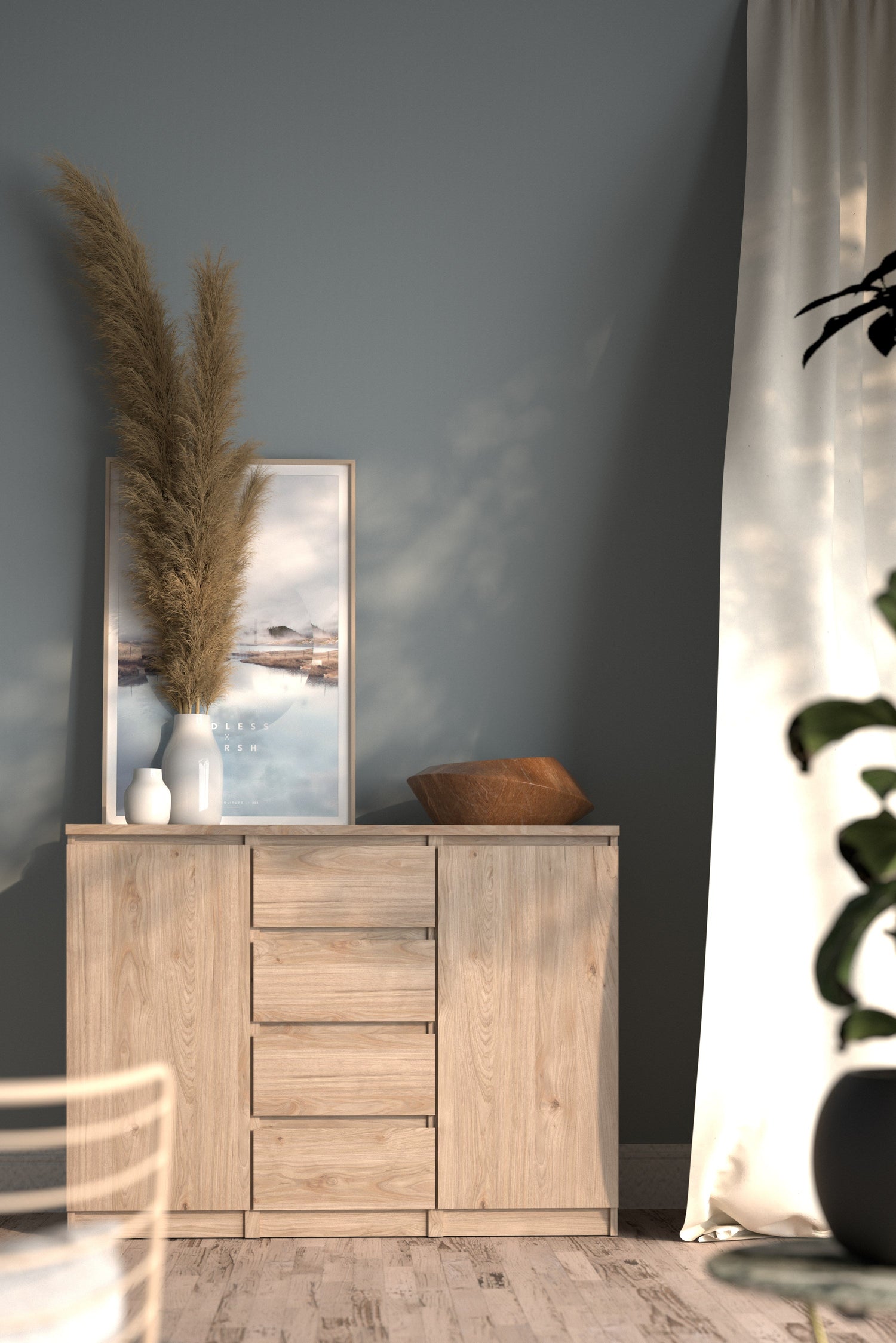 Naia Skænk m. 4 skuffer + 2 låger, Jackson Hickory