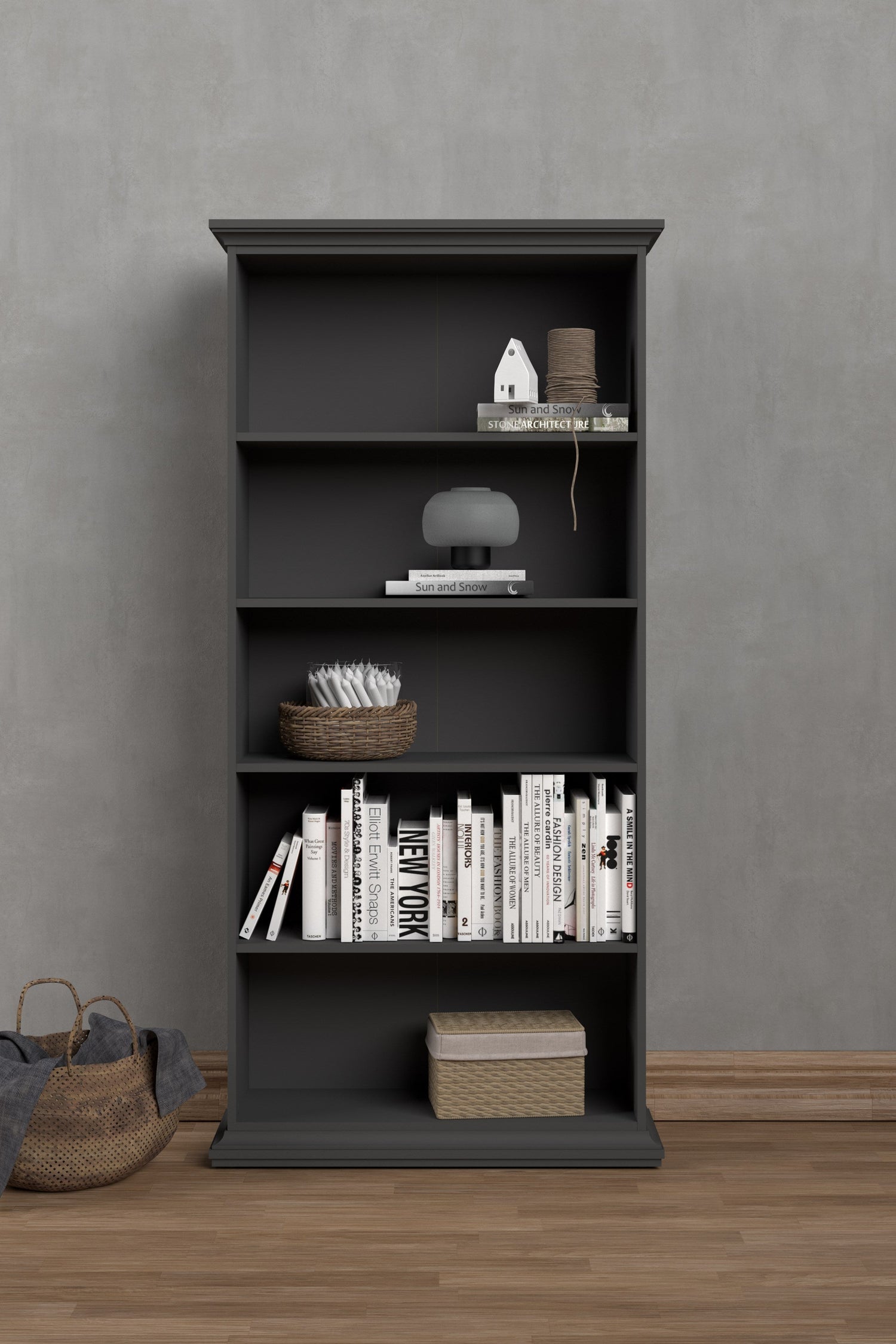 Paris Bogreol m. 5 hylder, 96x37x201, Mat Grå