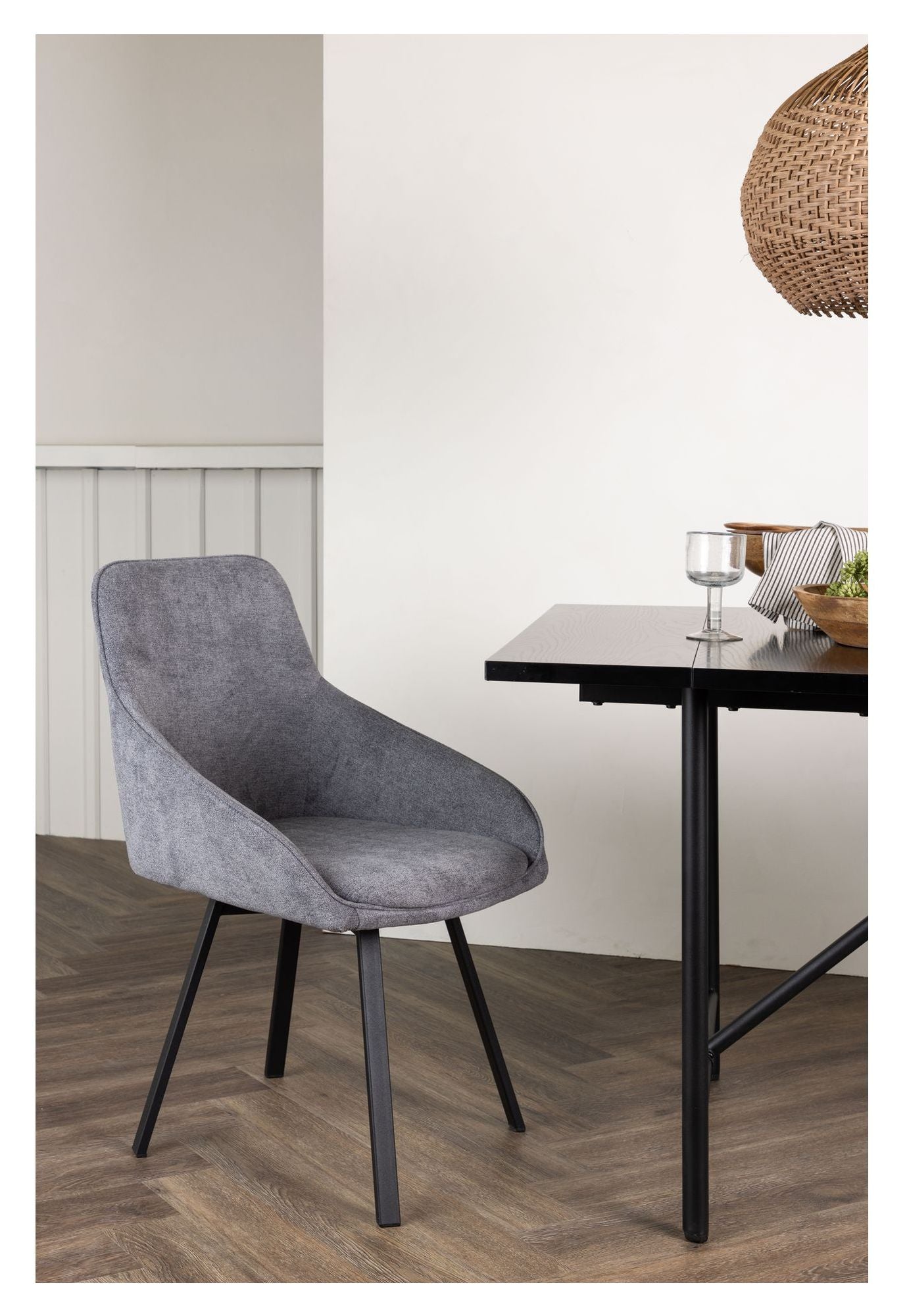 Rosie Spisebordsstol, Sort, Mørkegrå Stof